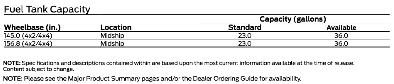 개솔린을 사용하는 F150의 연료탱크 사이즈는 23 갤런과 36 갤런이 기본입니다.