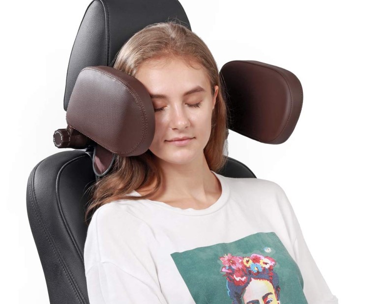 위는 장착된 모습. 오른쪽 처럼 목받침을 내려 목의 피로없이 잠을 청할 수 있습니다.