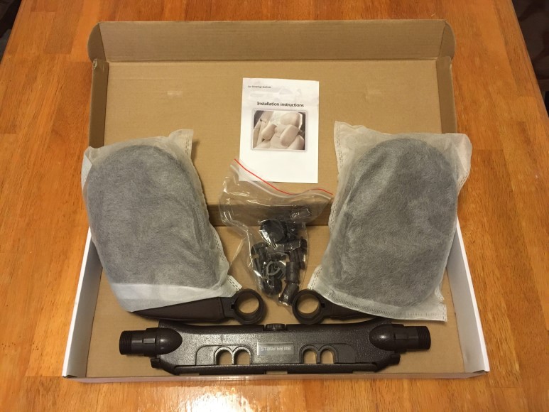 복잡한 제품 구성입니다만 헤드레스트의 기둥에 견고하게 장착됩니다.