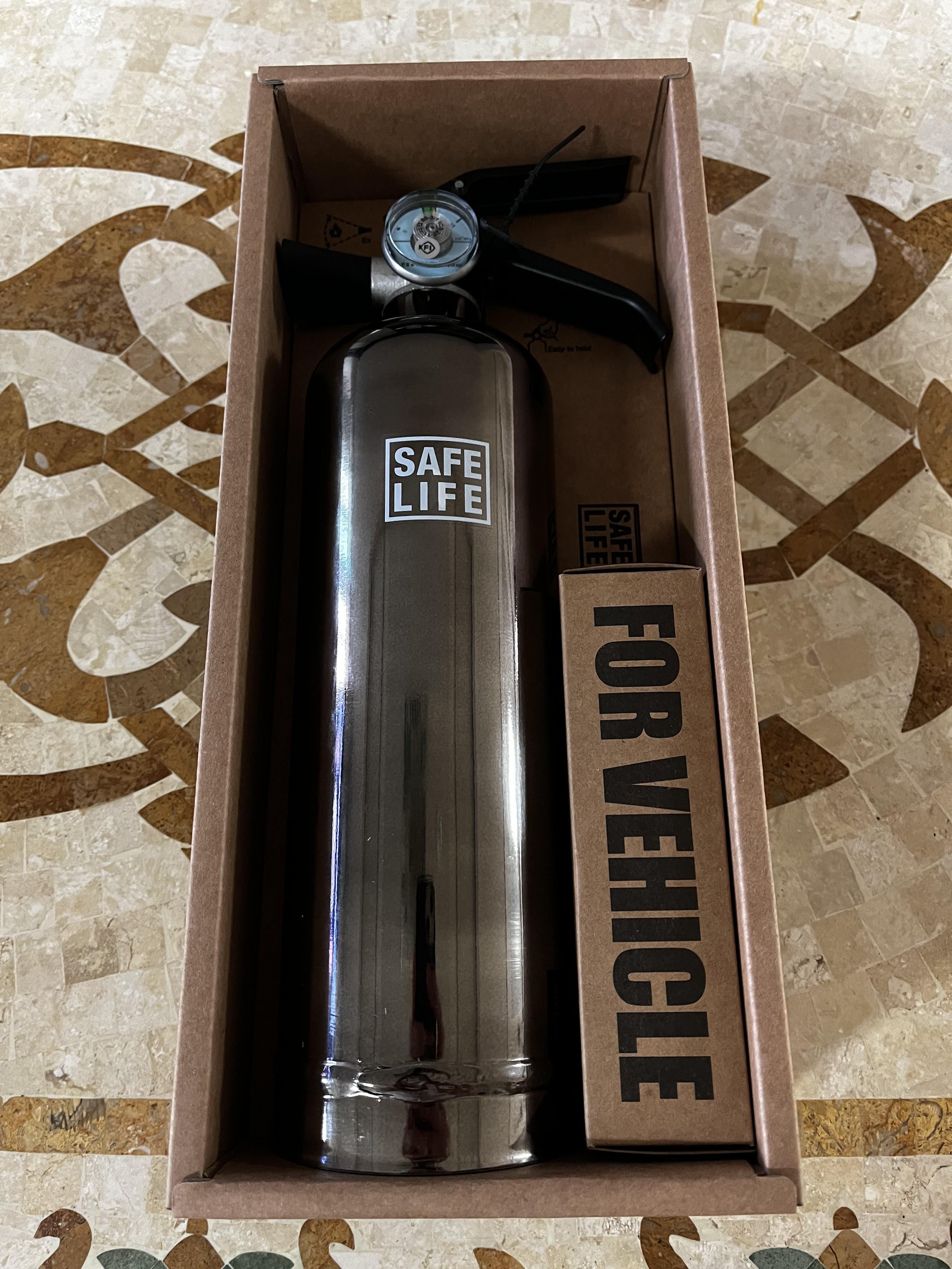 F150에 에코가스통을 싣고 다닐 생각을 하니, 이제 소화기가 필요했습니다. 소화기를 검색해보니 국내에 적당한 소화기가 있더군요. 국내의 세이프라이프 SafeLife 社(제조 : 충북 음성에 위치한 씨더블유소방산업 주식회사)에서는 차량용 분말 소화기 Z07를 블랙메탈 색상으로 출시했습니다. 차량 및 캠핑용 소화기로 A1B1C의 소화능력을 갖추고 총 중량 1.5kg의 소화기 입니다. 0.7kg의 약제 중량을 갖고 있어 10초 간 2-3미터 방사 능력을 갖추고 있습니다. -20도에서 40도 사이에서 사용가능합니다.