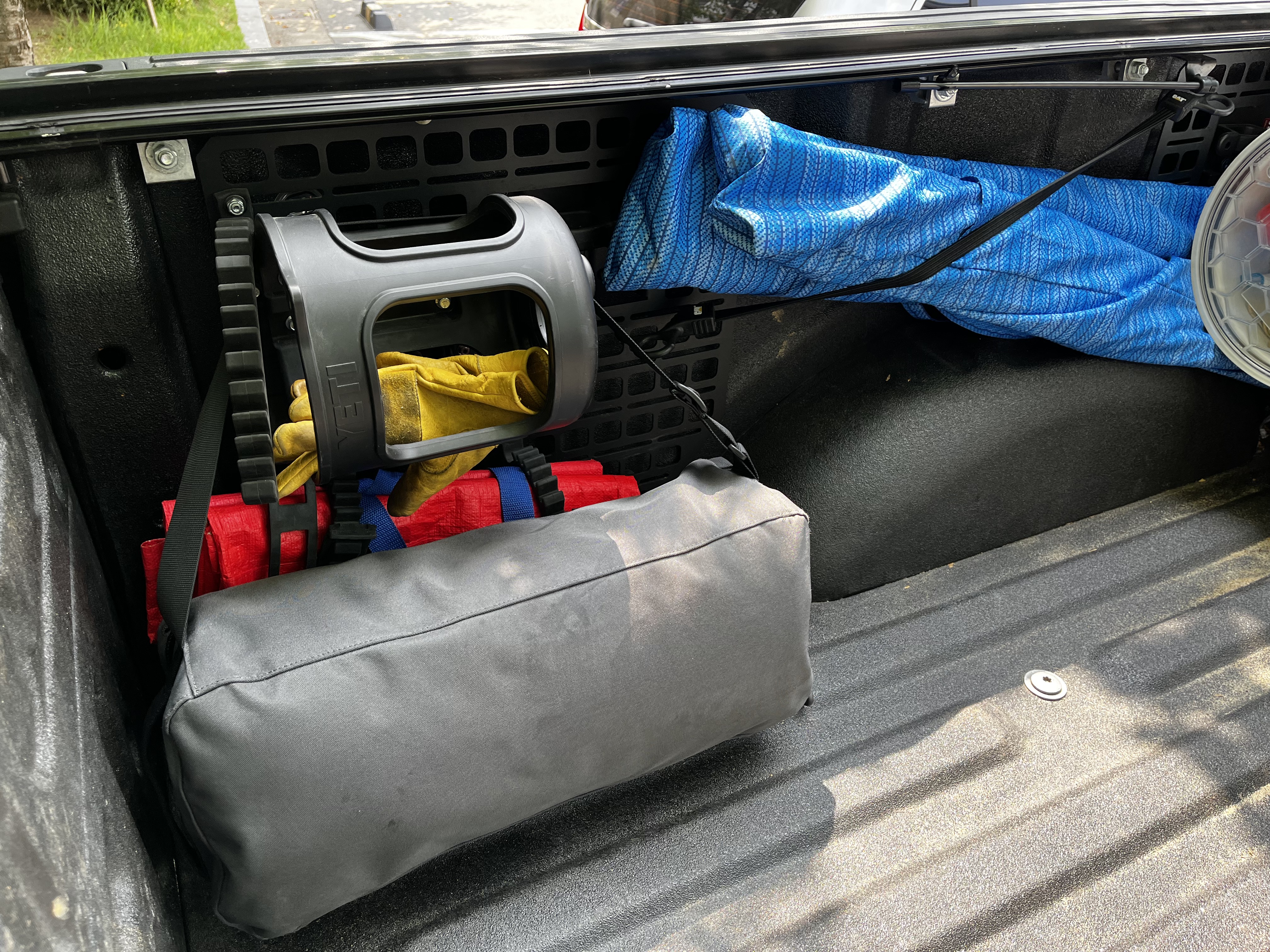 F150을 구매하며 선망의 업그레이드 대상이었던 BuiltRight 트럭베드 사이드 랙. 이는 트럭 적재함 측면에 금속으로 된 MOLLE (Modular Lightweight Load-carrying Equipment) 패널을 제공합니다. 이 회사를 한국에