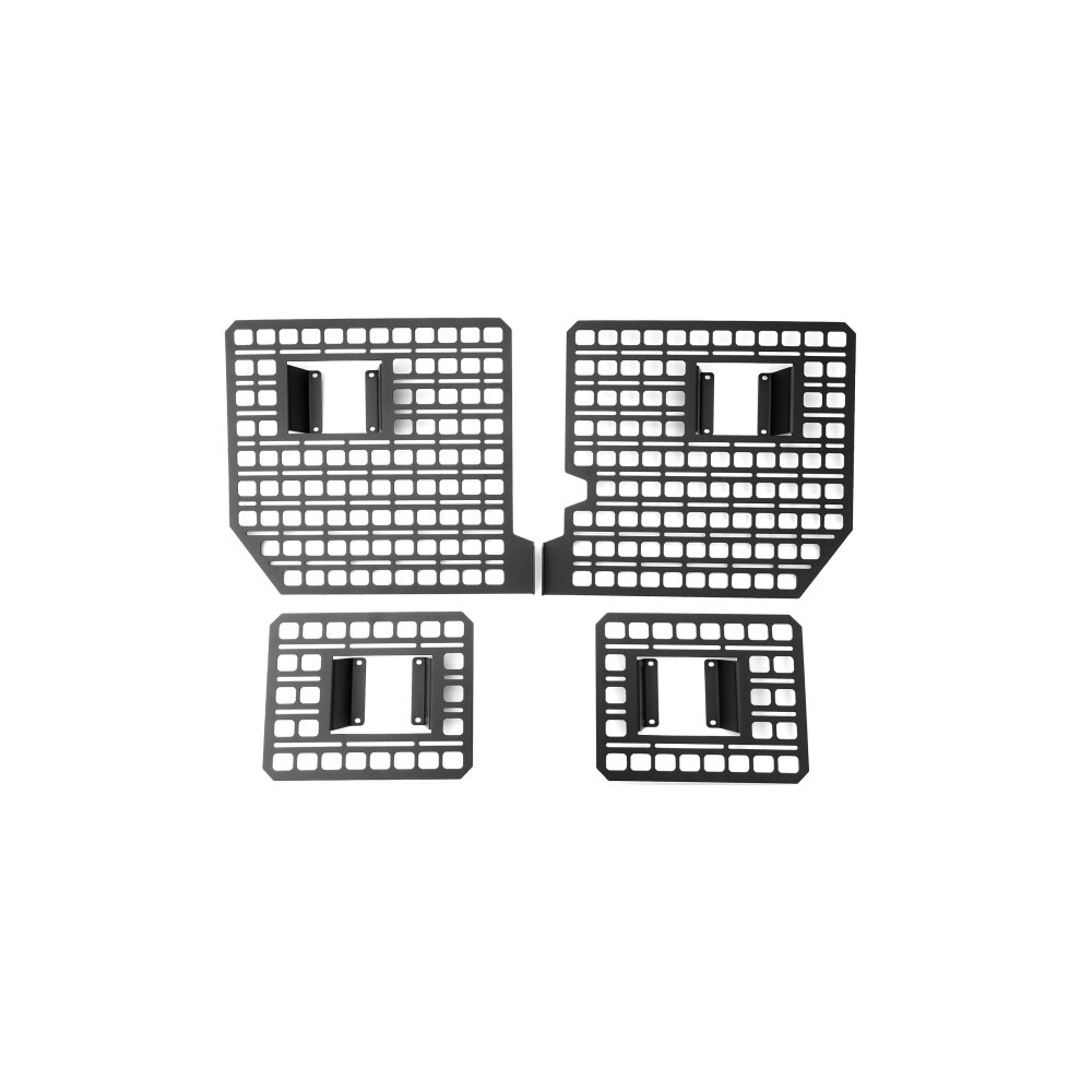 이는 트럭 적재함 측면에 금속으로 된 MOLLE (Modular Lightweight Load-carrying Equipment) 패널을 제공합니다.