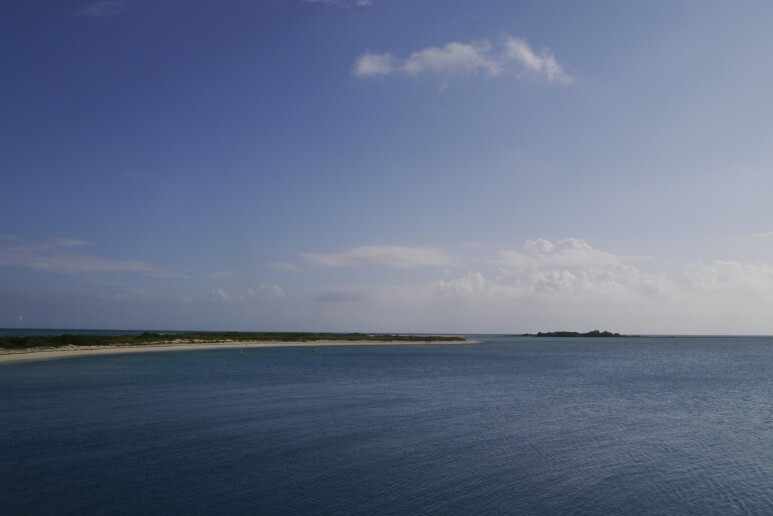 키웨스트에서 2시간 페리를 타고 드라이 토르투가스 국립공원에 닿을 수 있습니다. 이 산호섬은 작지만 역사 유적을 간직하고 있고, 멋진 스노클링 스팟을 갖고 있습니다. 페리는 예약이 필요합니다. 이 페리 티켓에 아침, 점심, 간식과 섬투어, 스노클 및 민물 샤워가 모두 포함되어 있습니다. 출발 전 식사, 화장실 등을 걱정했었는데, 뜻밖에 편안한 여정이었습니다.