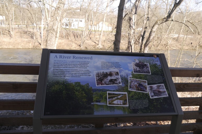 과거 이리 호수 Lake Erie와 오하이오 강 Ohio River 사이 Ohio and Erie Canal 운하로 이용되어 오염이 심했던 쿠야호가 강. 이제 이 계곡이 지난 2000년 국립공원으로 지정되어 생태보호를 위한 노력이 지속되고 있습니다. Visitor Center 뒤로 강물이 흐르고 있습니다.
