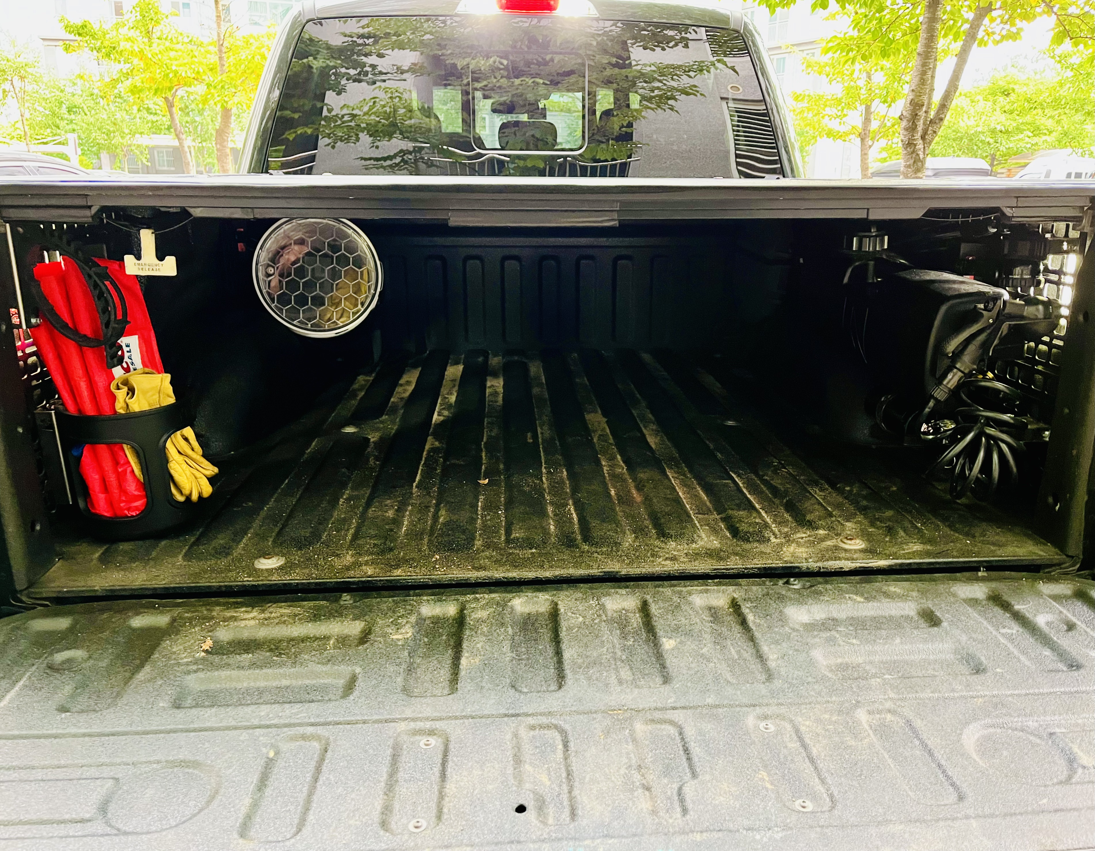 아래는 예티 워터저그를 넣어 본 모습입니다 꽤나 안정적으로 잡아둡니다. 본디 캐빈룸에 두었는데, 추돌 사고가 난다면 실내에 흉기로 둔갑할 위험이 있어 적재함으로 잘 자리를 잡은 듯 합니다.