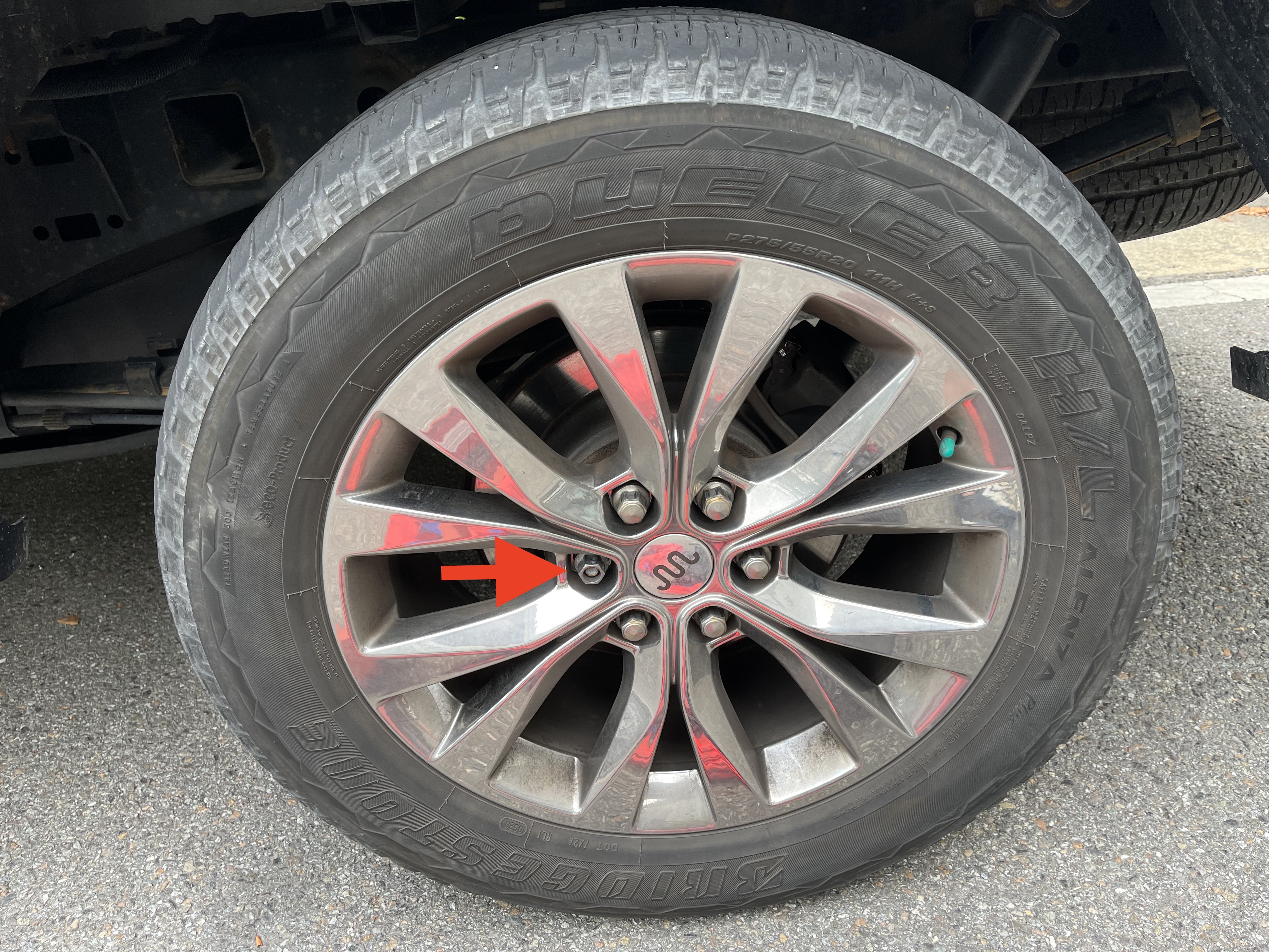 모든 휠넛이 준비되었지만 하나의 Lug Nut만을 교체하기로 합니다. 문제의 오래된 너트를 풀어내었습니다.