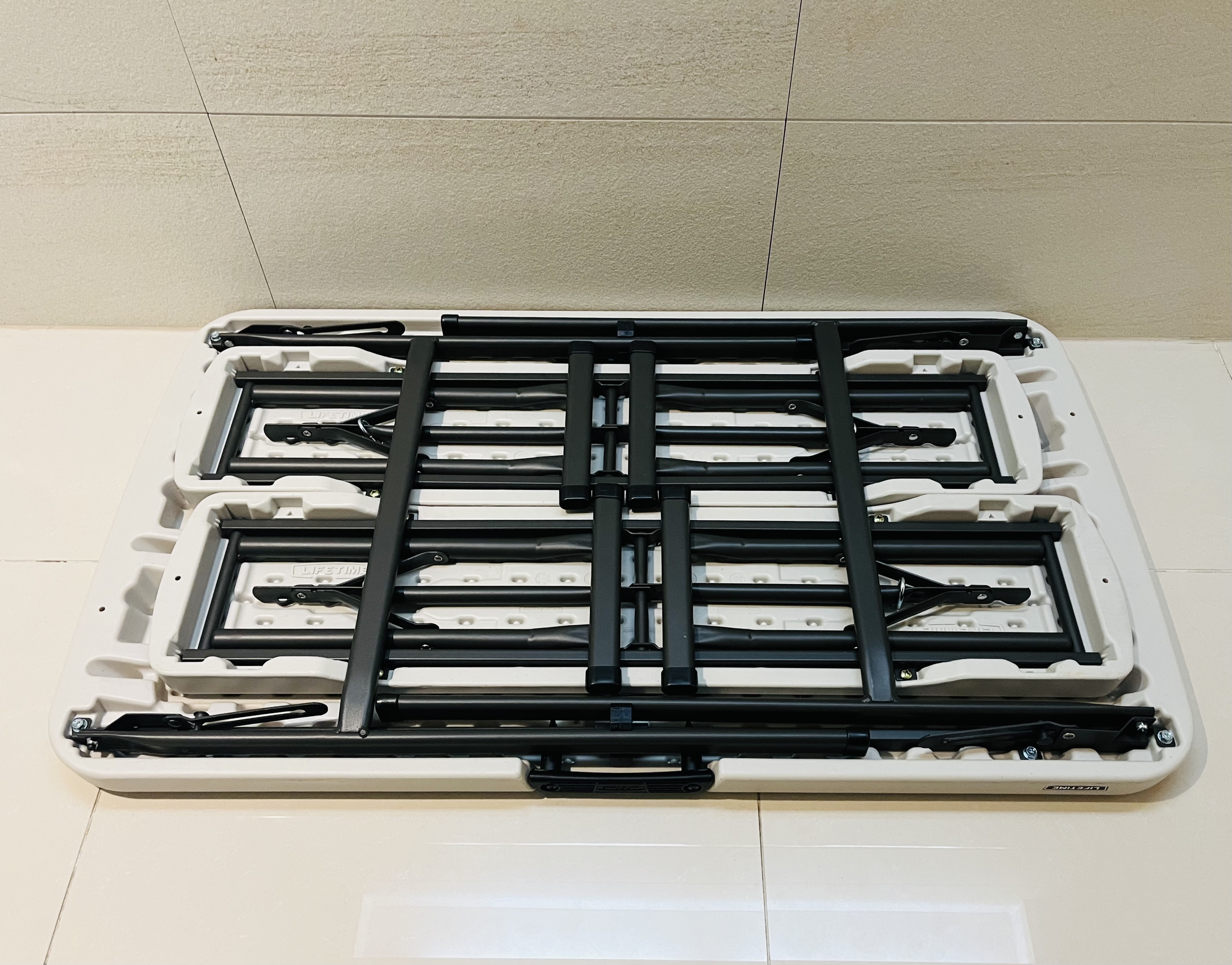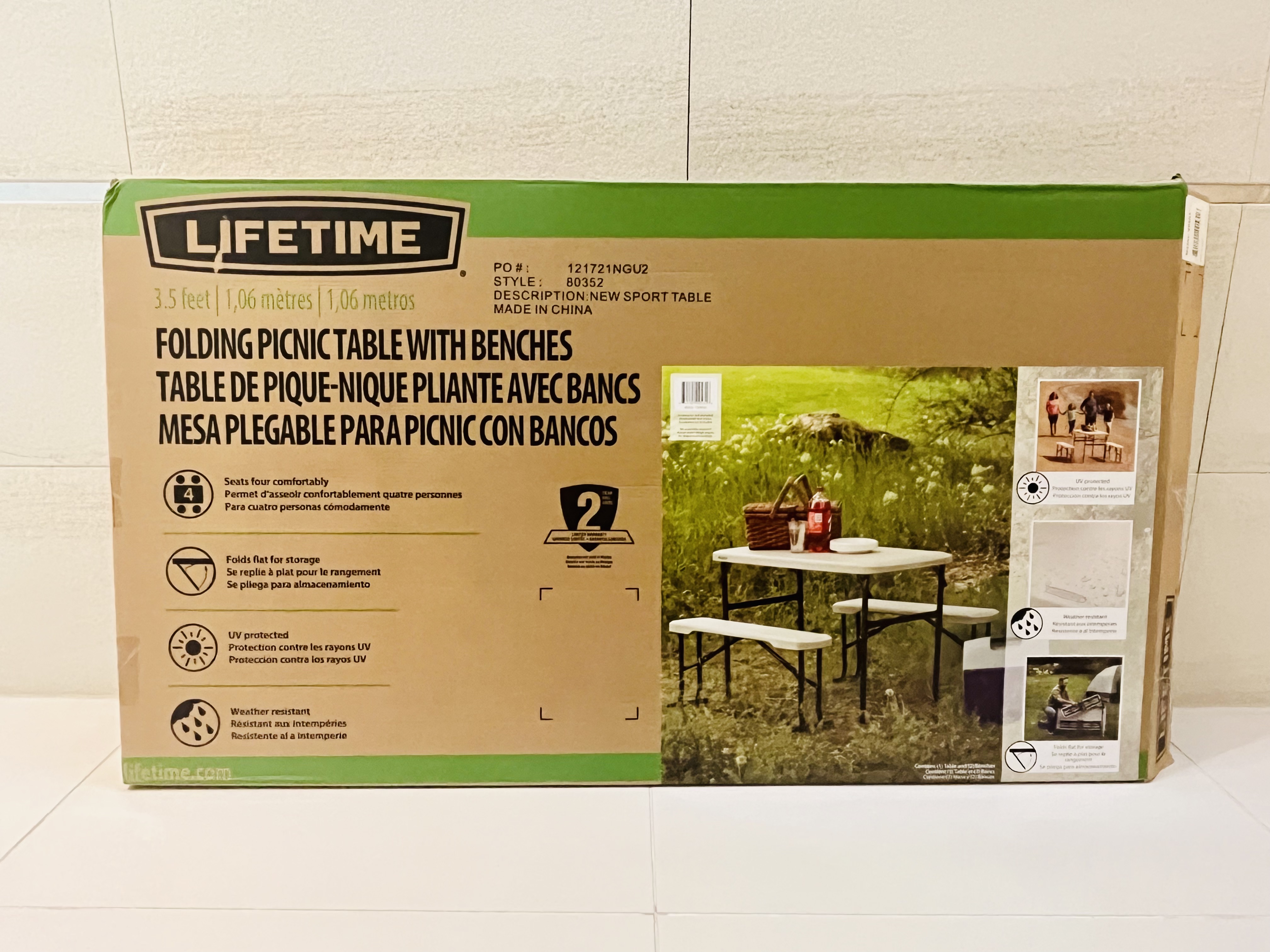 로드트립에 간단히 식사할 위치를 찾기가 쉽지 않아, 위 제품을 구입했습니다. 국내에서 시판하지 않는다고 생각했는데 생각보다 쉽게 구할 수 있었습니다. 아래와 같이 접어 수납이 가능하며, 매우 큰 편은 아니지만 4가족의 피크닉에 적합한 크기를 갖고 있습니다. 구성은 테이블1 + 의자2 세트이며, 무게가 19.9kg로 비교적 무거운 편입니다.