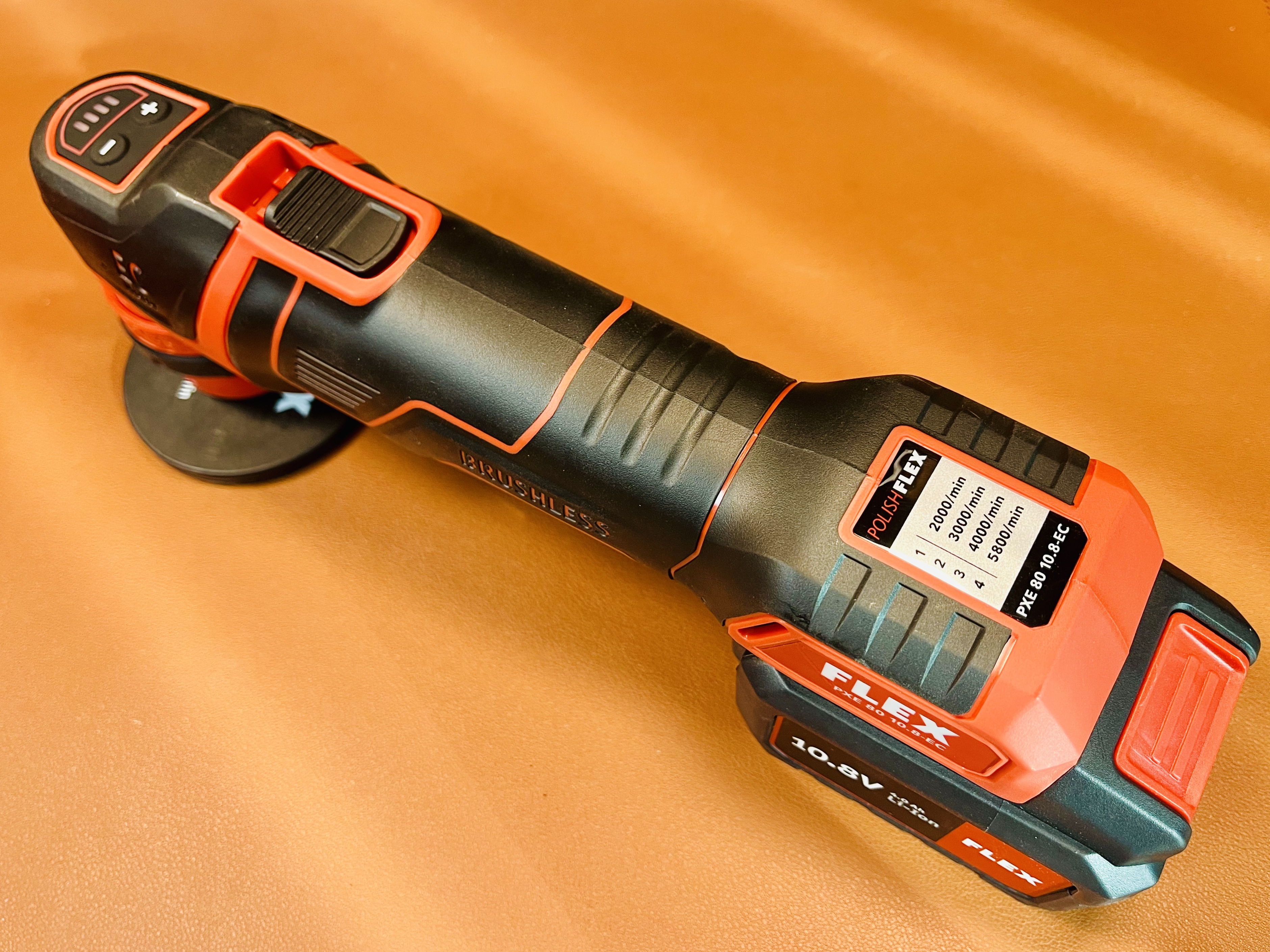 PXE80은 Flex에서 제조한 무선 회전 연마기입니다. 자동차 표면을 세밀하게 다듬고 연마하도록 설계되었습니다. 컴팩트하고 인체공학적인 디자인에 고무 재질의 그립을 적용하여 편안하게 잡고 조작할 수 있습니다. 제품은 무부하에서 40분 작동하는 2.5Ah 배터리, 같은 조건에서 1시간 50분 가량 작동하는 4.0Ah 리튬 이온 배터리도 구비되어 있습니다. 이 무선 폴리셔는 부피가 작고, 2.5Ah 배터리(260g)와 4.0Ah 배터리(420g)를 사용시 1kg 내외의 무게로 비교적 가볍습니다. 무엇보다도 조용하고 부드럽지만 강력하게 구동하는 브러시리스 모터를 사용합니다. 작고 가볍지만 안정되고 힘있는 작동으로 인기가 높습니다.