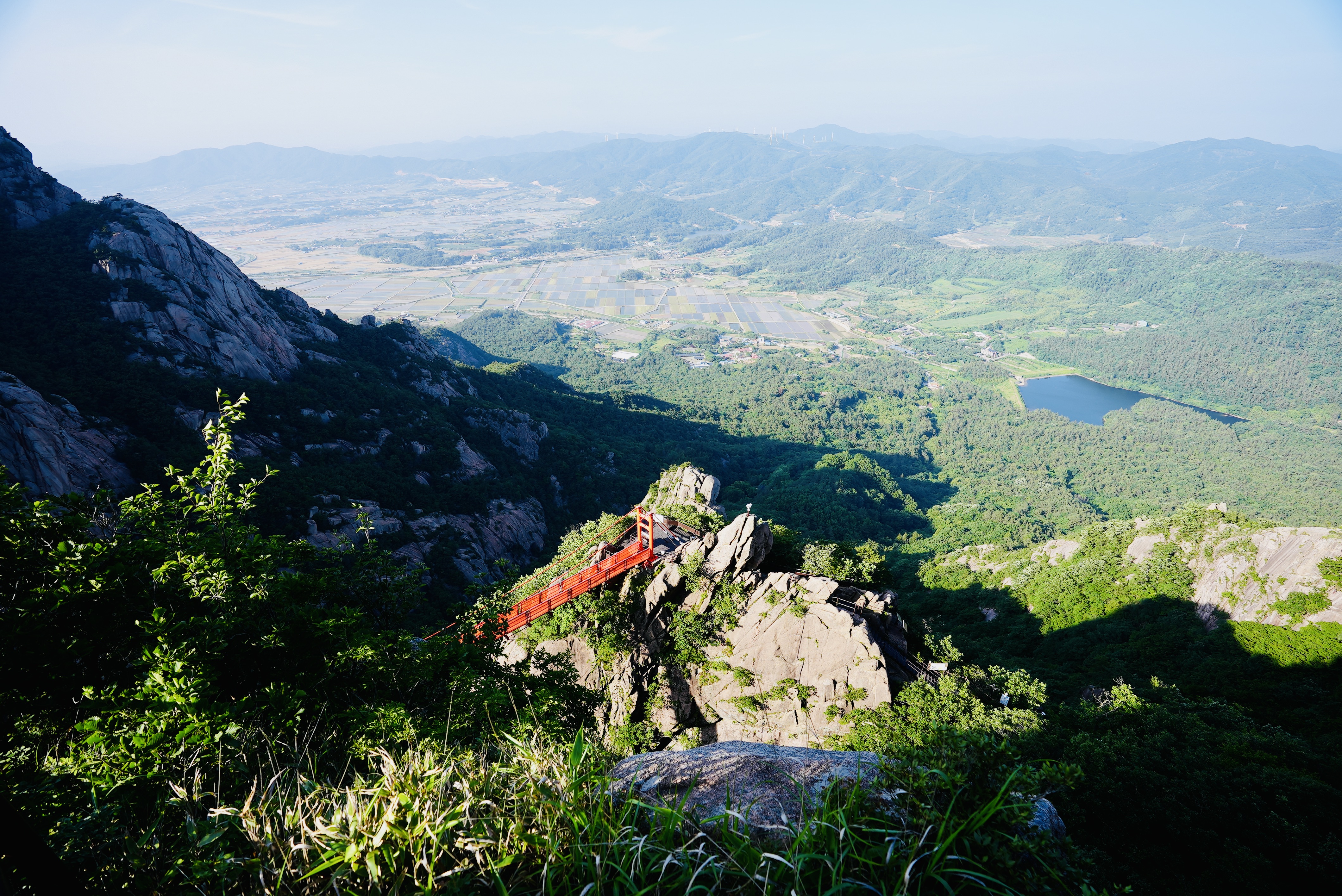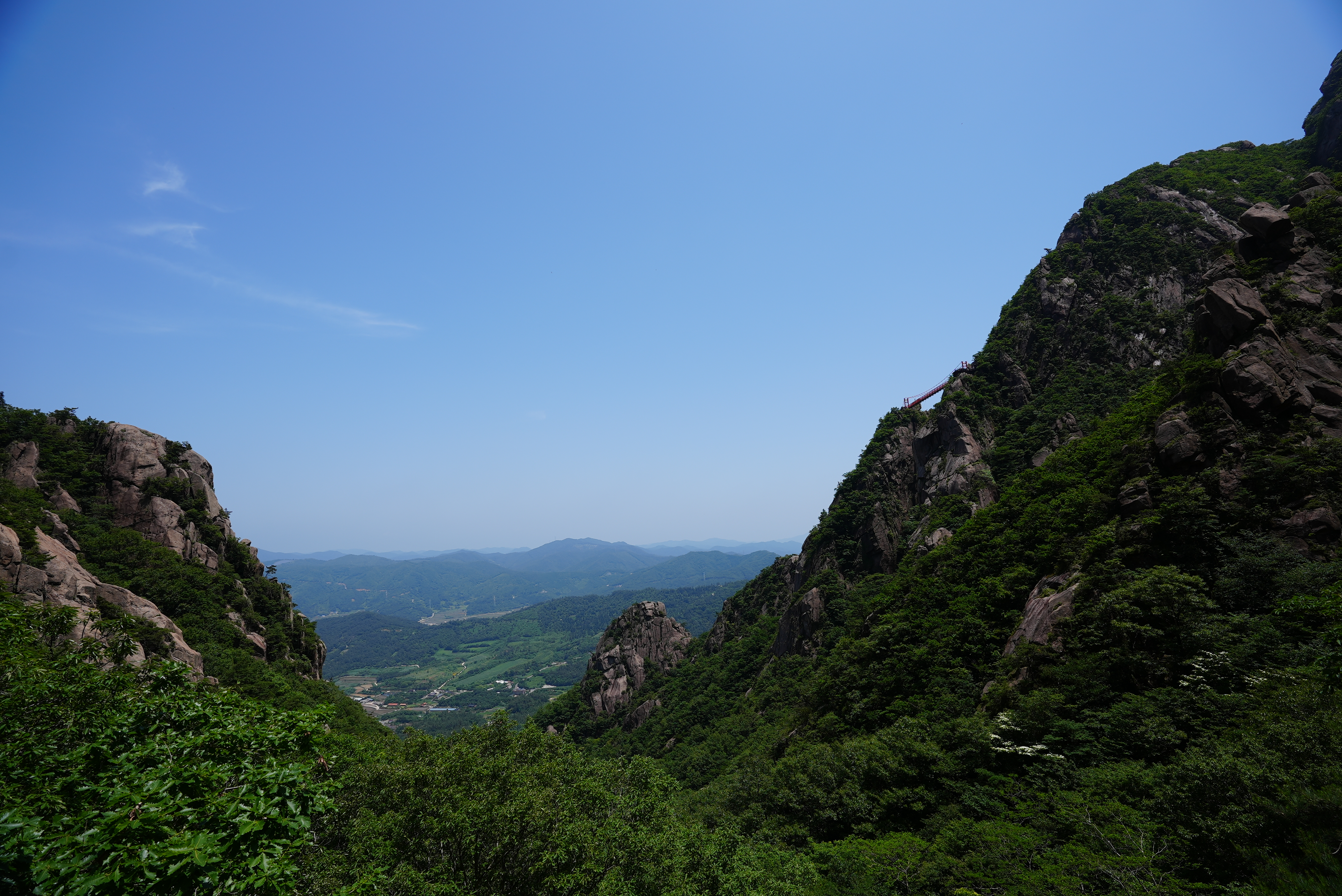 산을 오를 수록 저 멀리 구름다리가 보입니다.