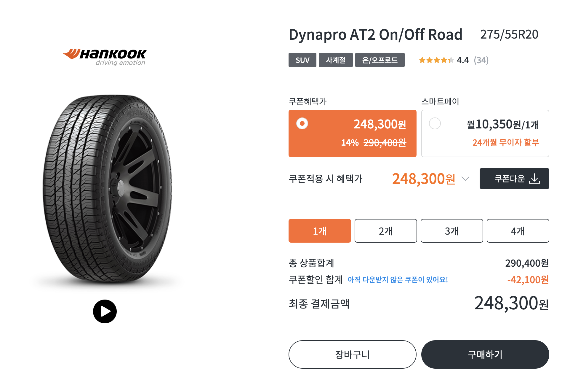 고속주행에서 조금 속도차가 나게 되네요. 평소 후륜구동이기에 큰 문제는 없을 것이라 생각하고 있습니다. 문제는 국내에서 275 55R20 타이어를 찾기가 쉽지 않다는 것입니다. 다행히도 한국타이어에서 해당 제품을 판매합니다. 한국타이어 지점인 근처 티스테이션에 문의하니 '내부 전산에 타이어를 찾을 수 없다' 합니다. 알고보니 수출용제품이라 전산에 잡히지 않는다고 하네요.