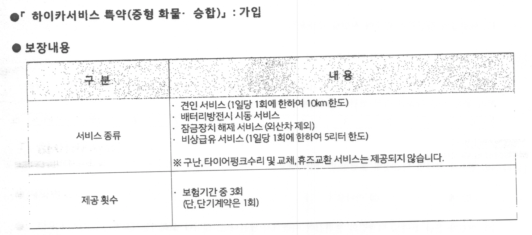 *구난, 타이어펑크수리 및 교체, 휴즈교환 서비스는 제공되지 않습니다.