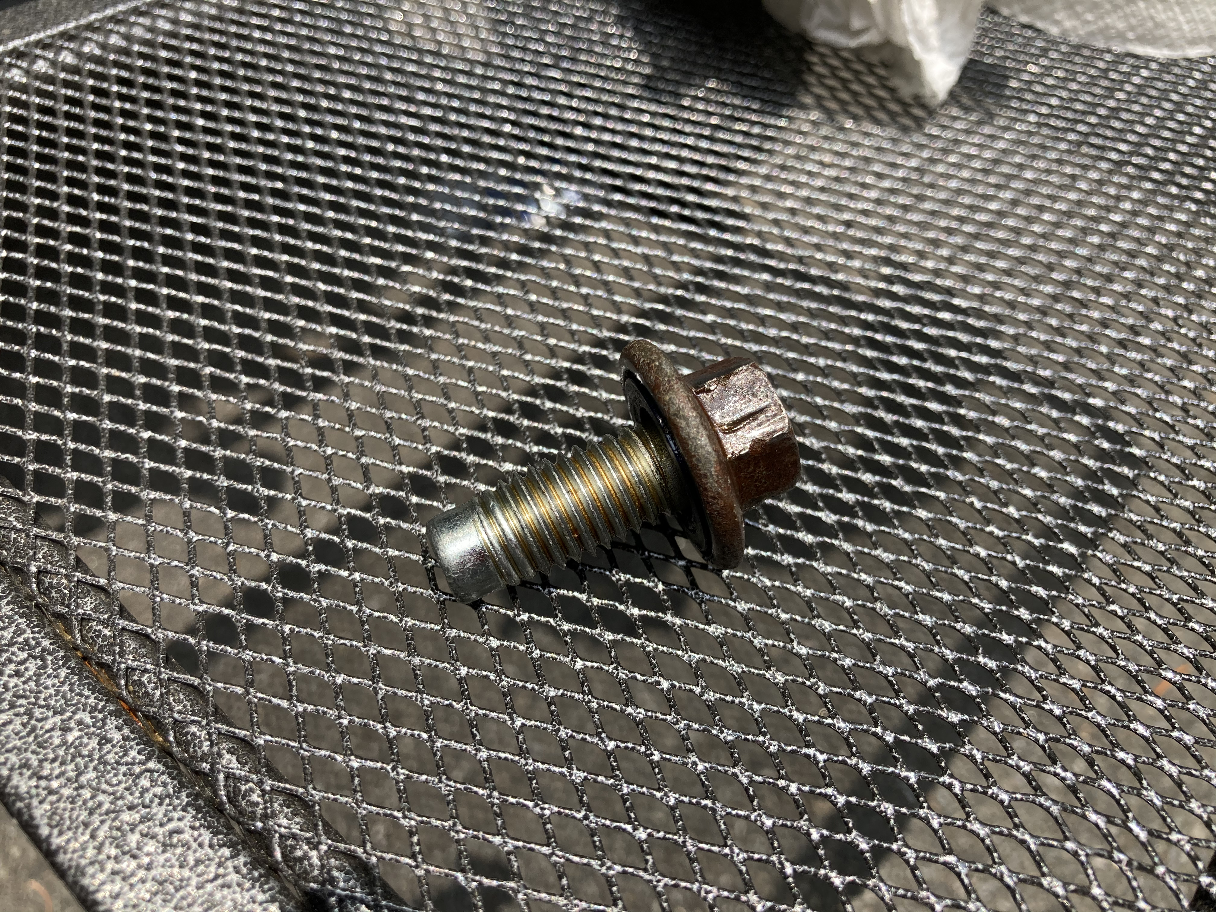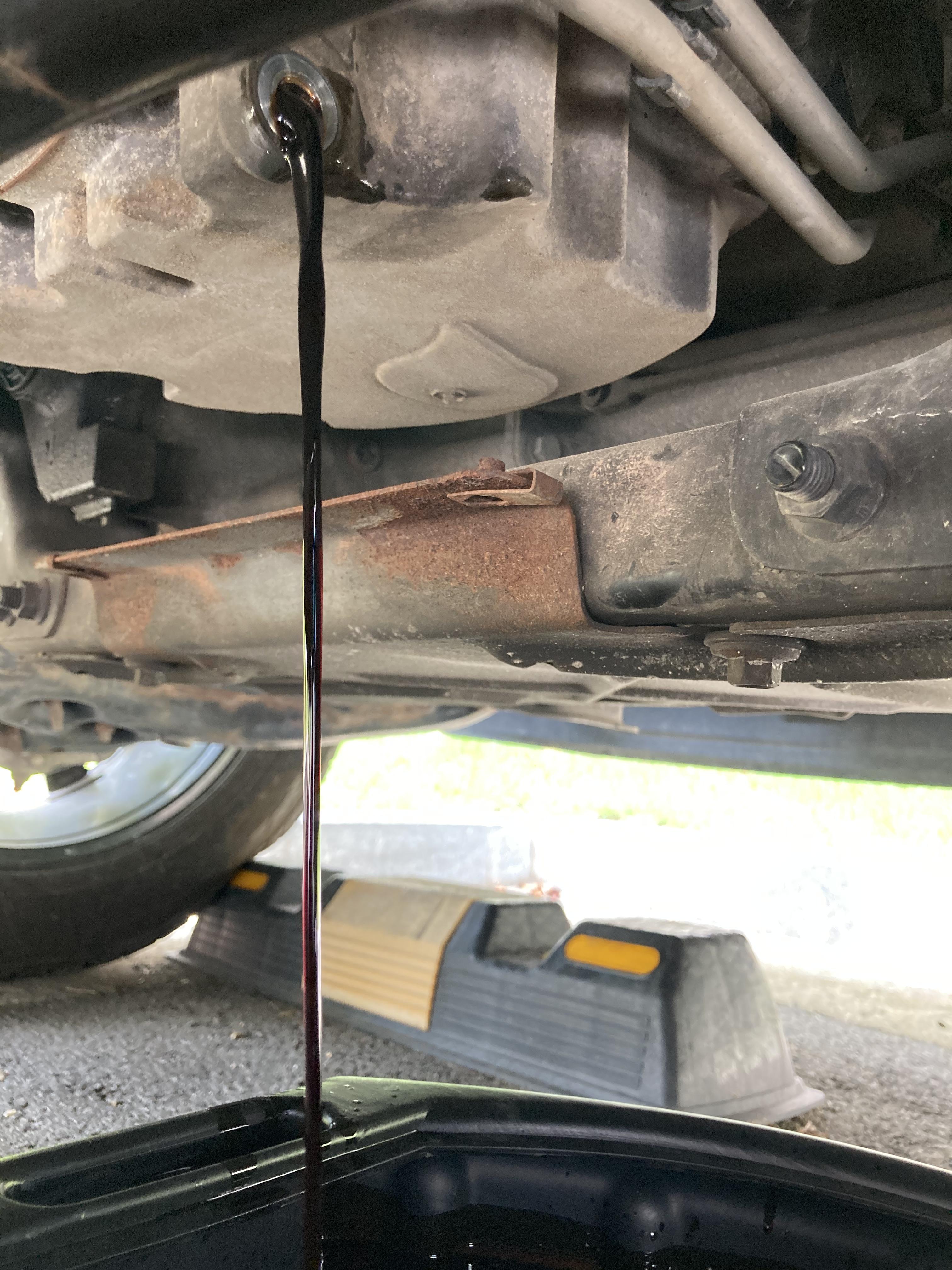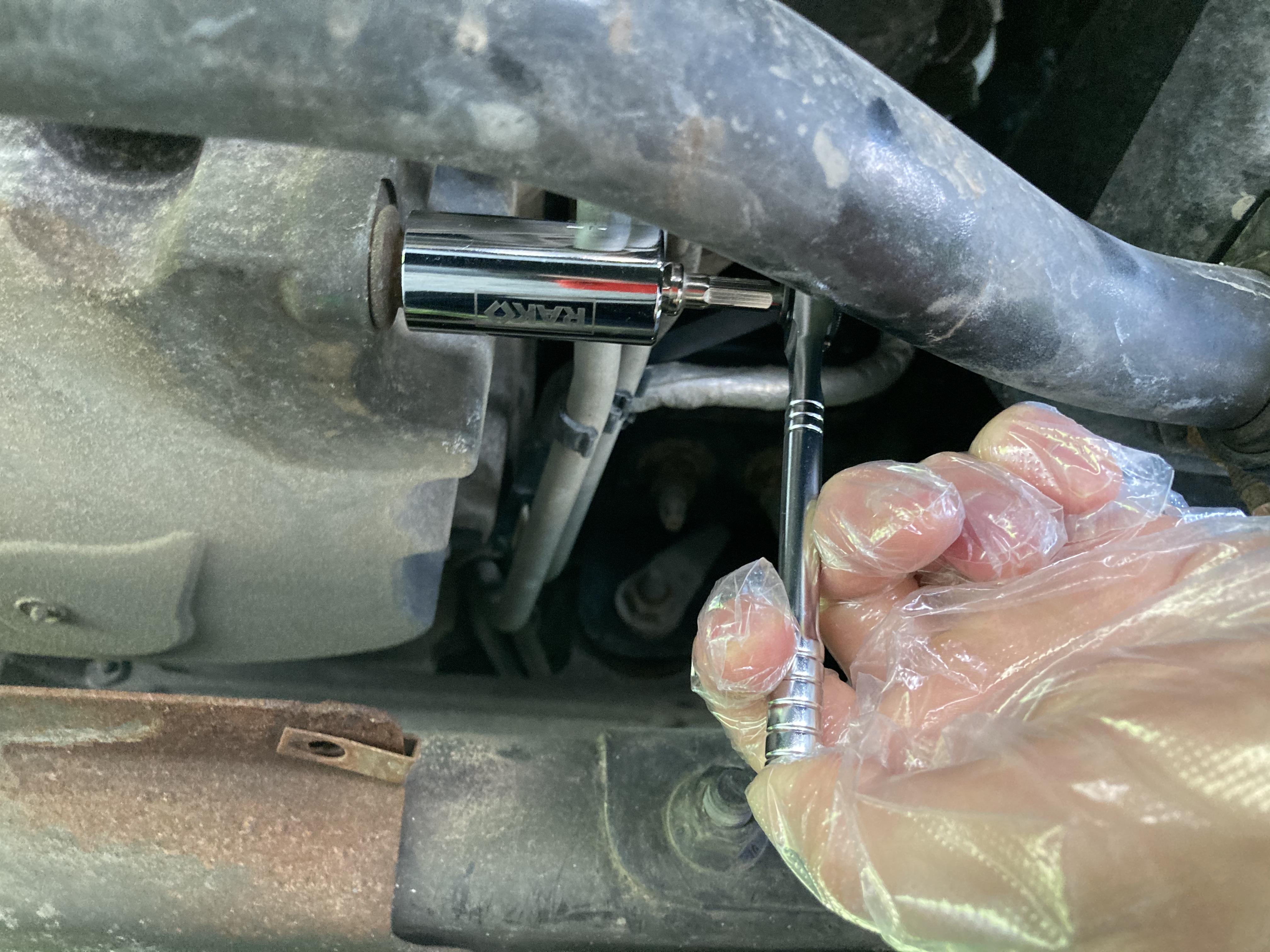 차 밑으로 들어가 보니, 녹슨 드레인 볼트가 보이더 군요.