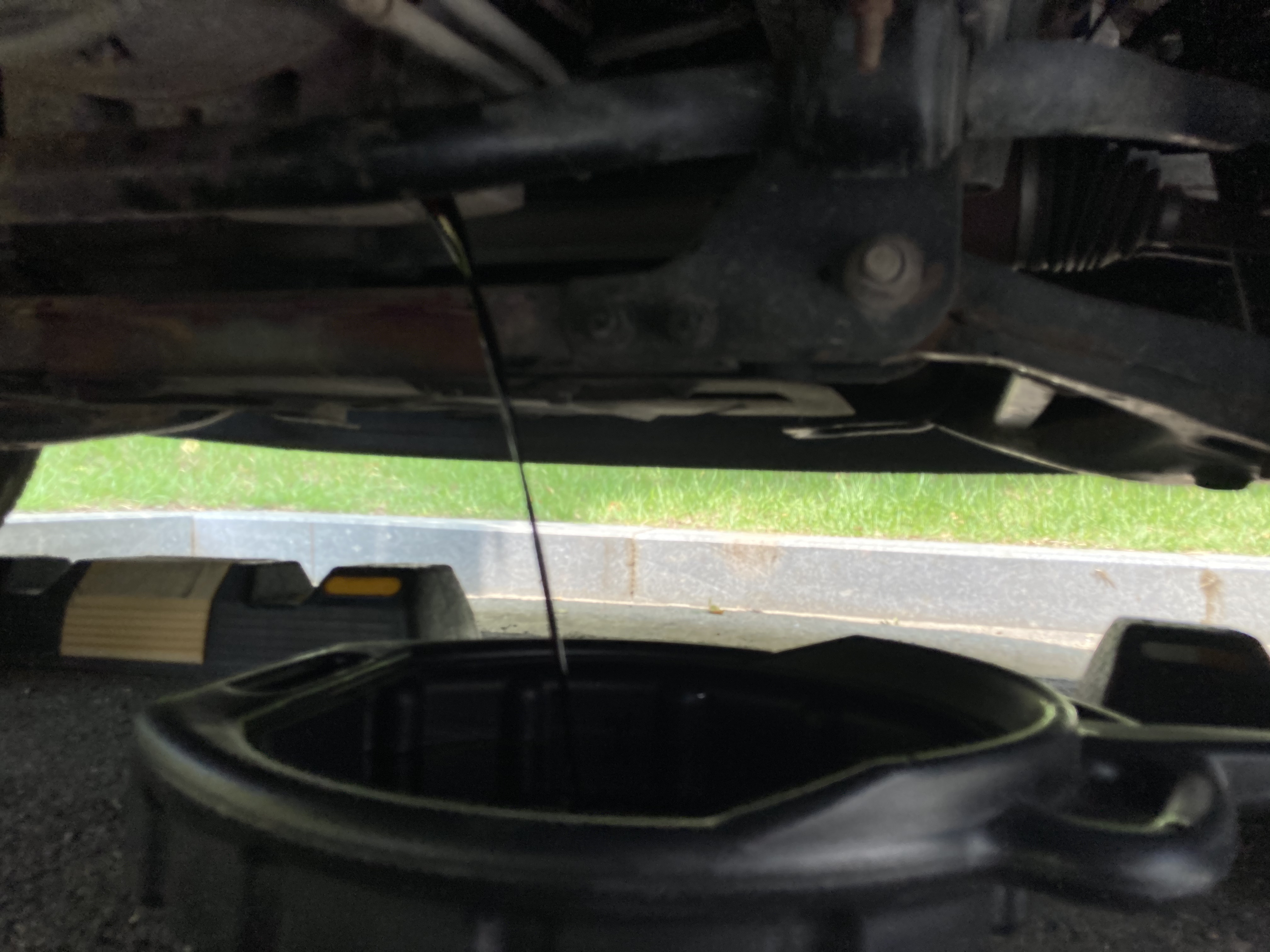 상당히 세게 조여져 있어 매우 힘들게 풀어냈습니다. 그리고 드레인 볼트의 마지막 체결 지점에서 손으로 잡고서 순간 볼트를 떼어내니 엔진오일이 터져나옵니다.