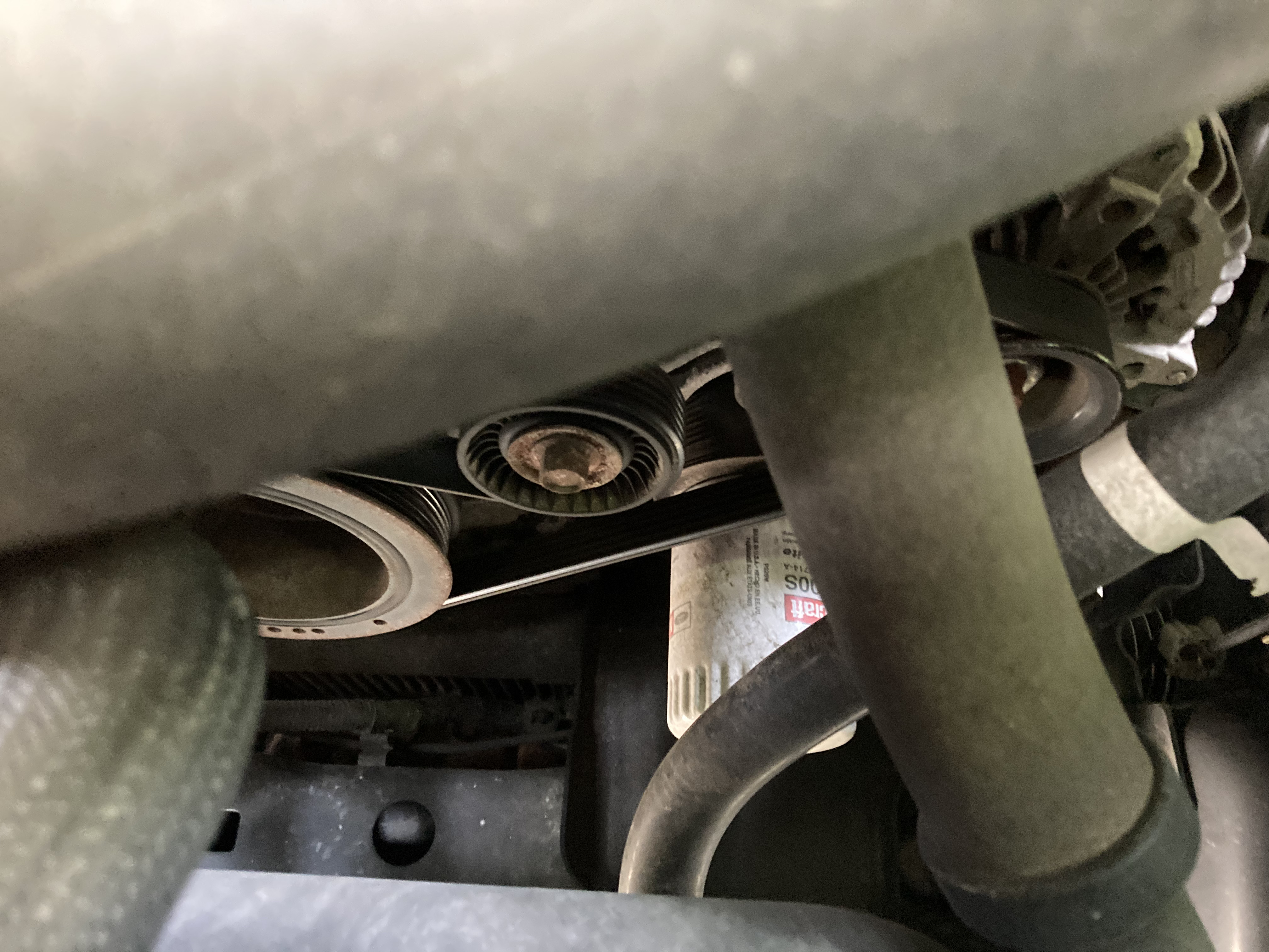 본넷을 열어보니 너무나도 안쪽에 오일필터가 위치해 손이 닿지를 않습니다. 차량 전방으로 이동해 다시 차량 하방으로 들어가 보았습니다.