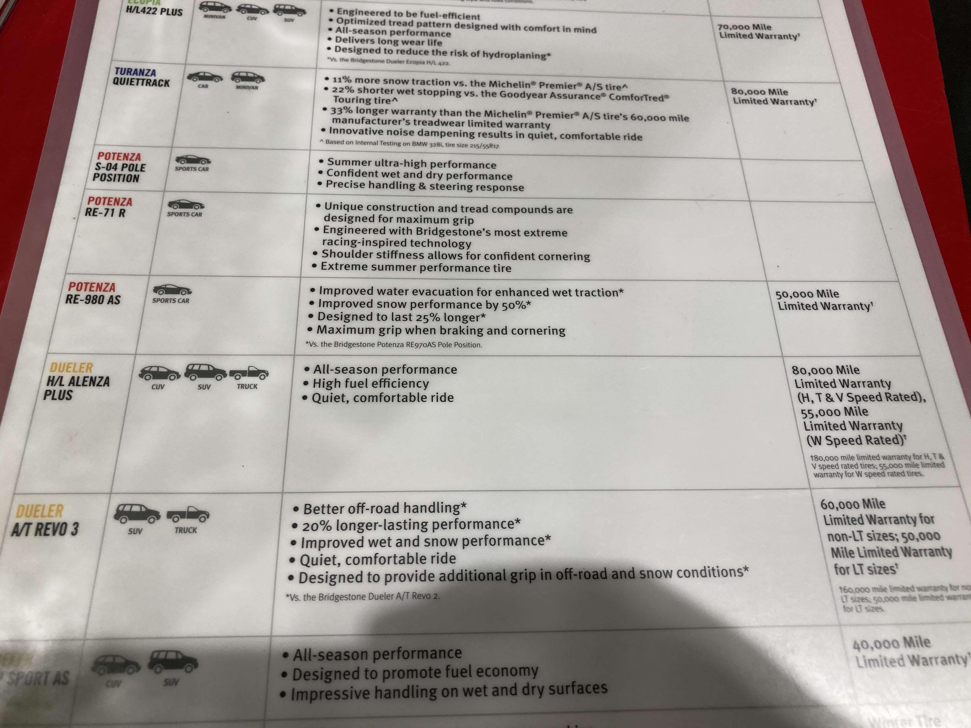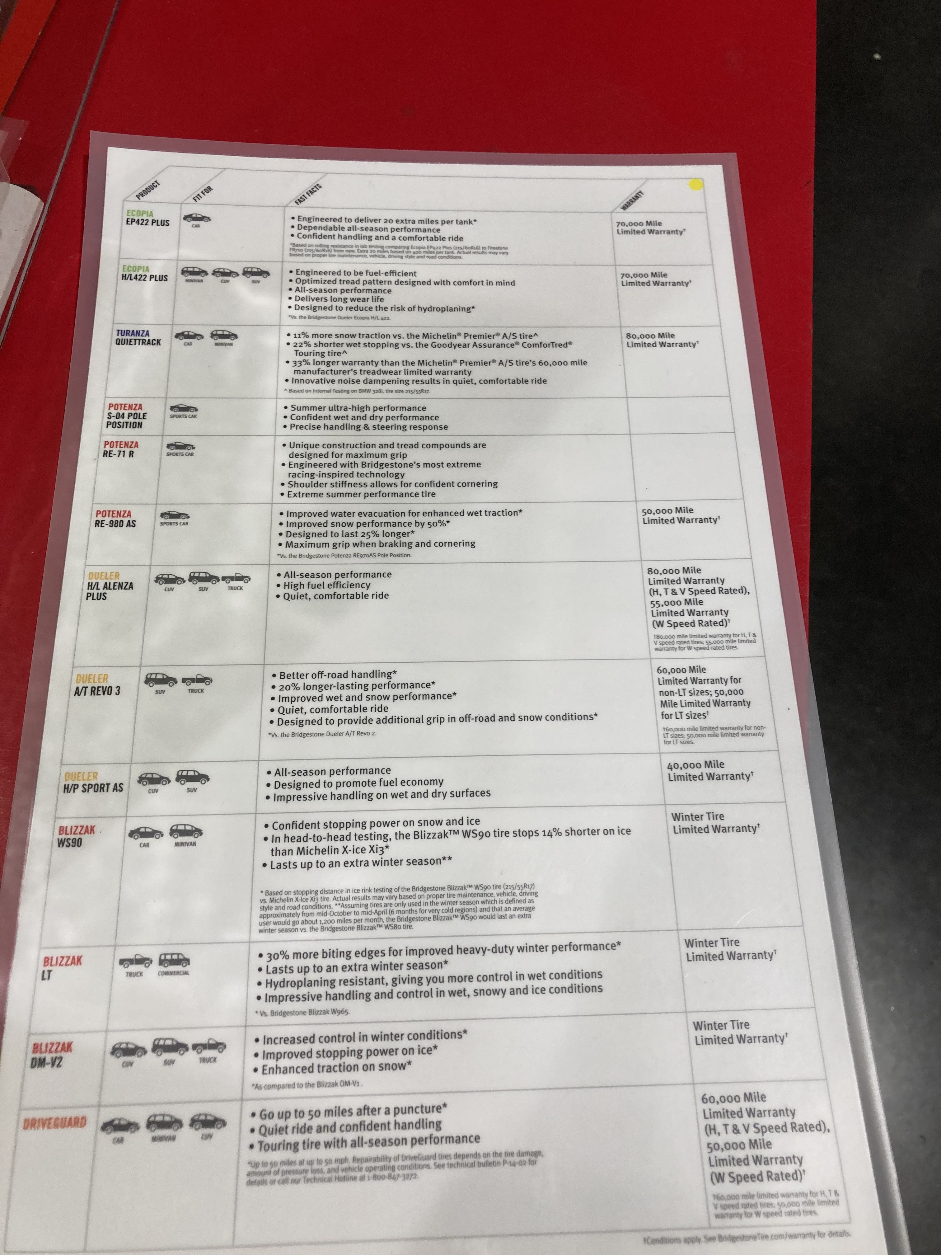 여러 타이어 중에 골라야 했는데, 성능이 좋다고 알려진 브릿지스톤 타이어를 선택했습니다.