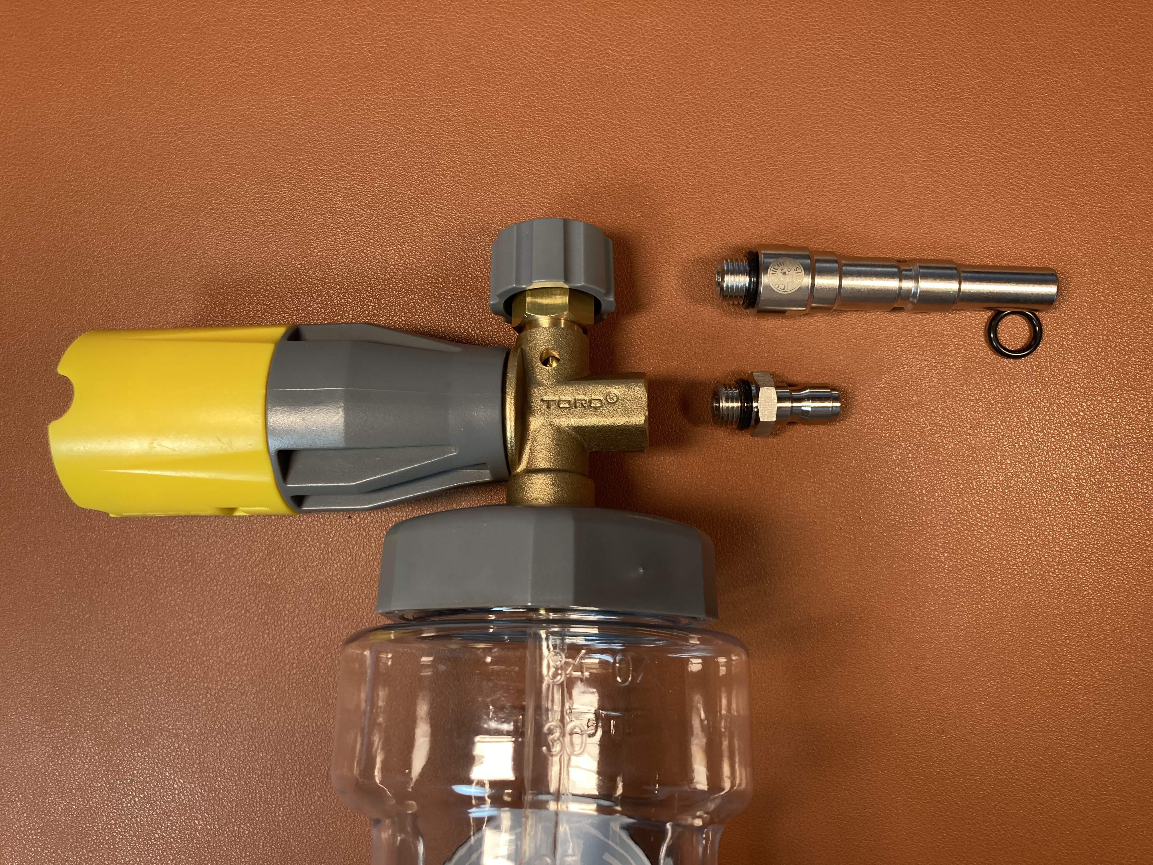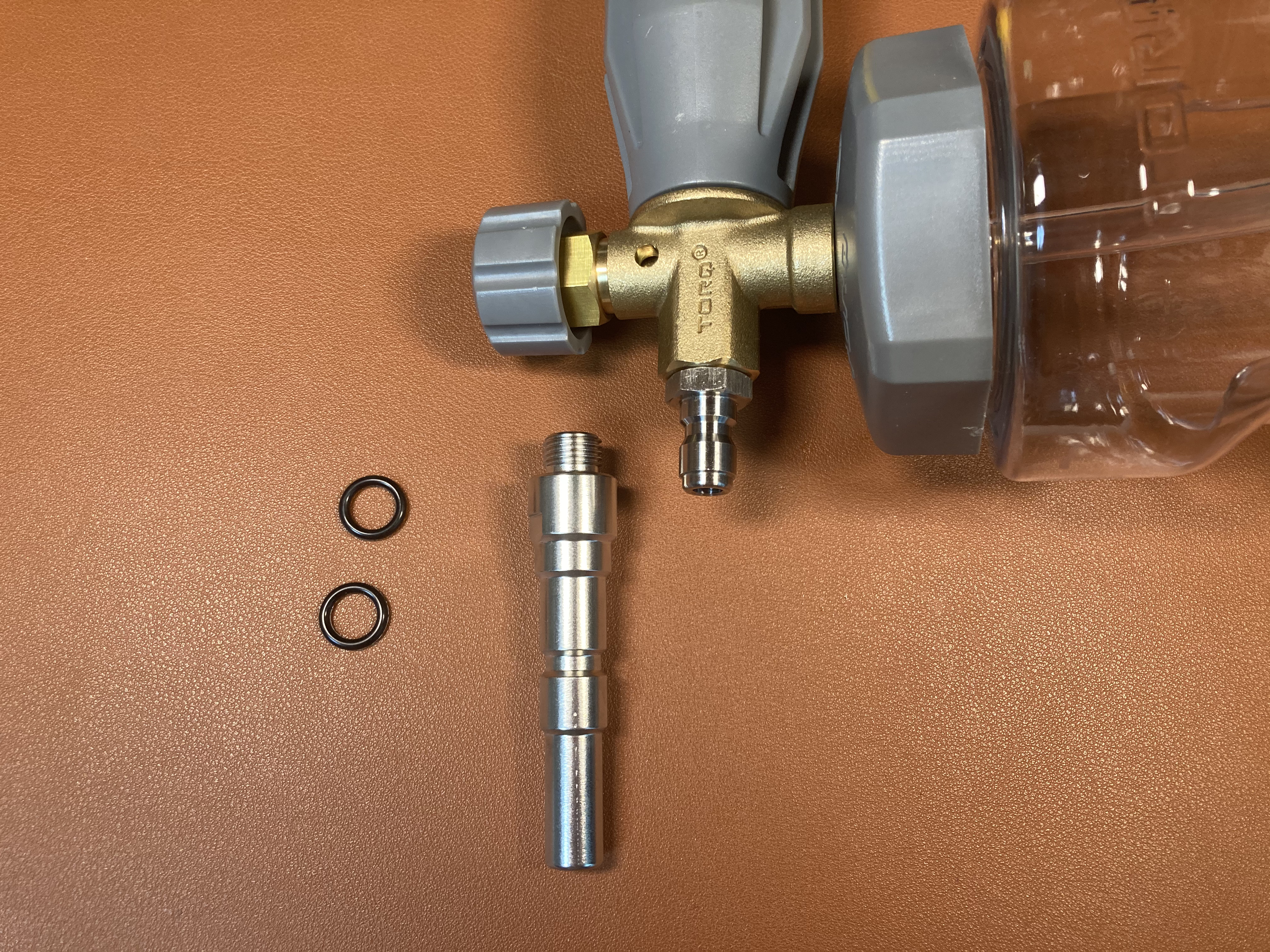 떼어낸 퀵릴리즈 어댑터와 국내 세차장용 닐피스크 비교 모습.
