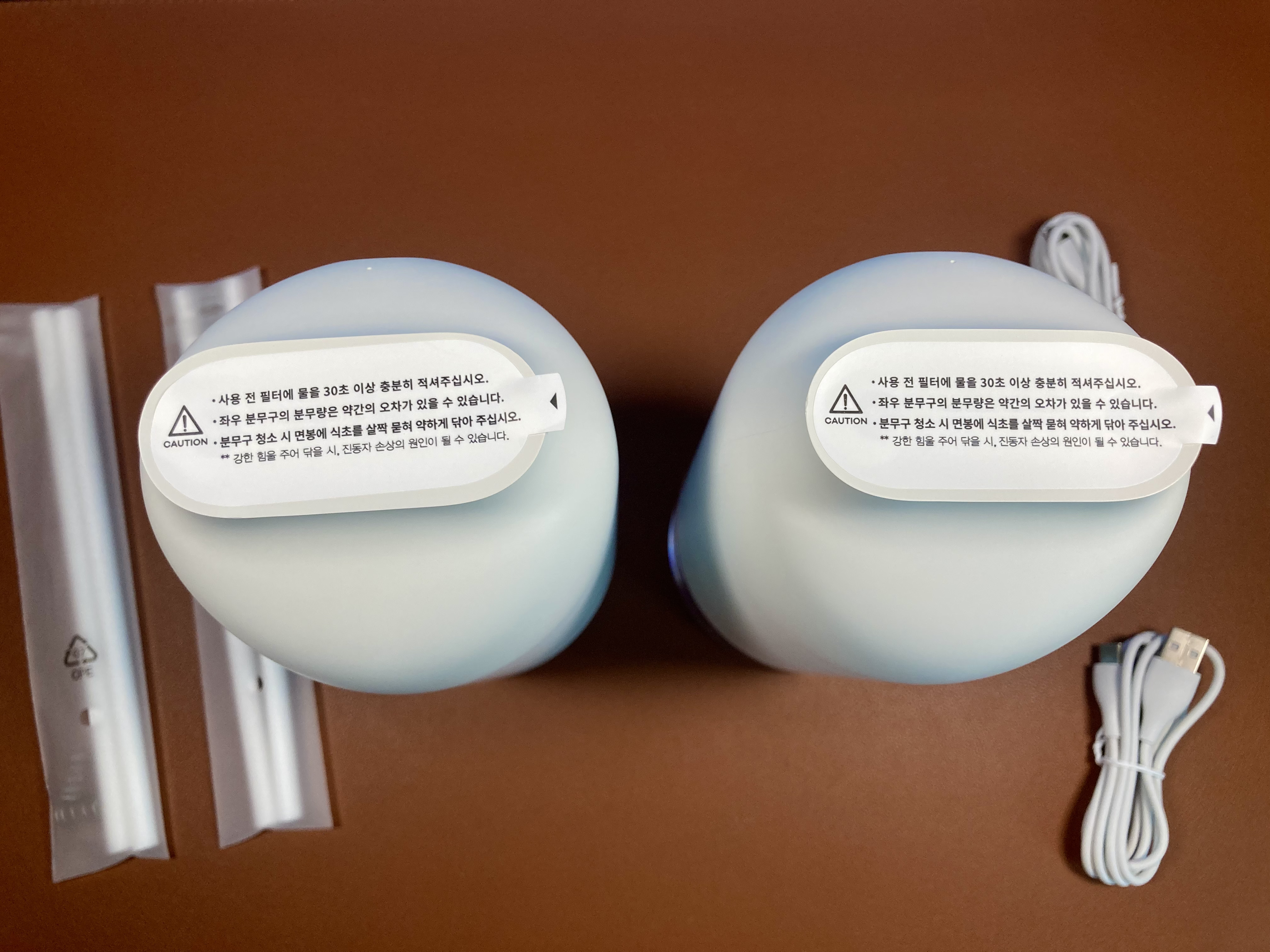 - 특히 무선이 주는 편리함이 매우컸습니다. 무선을 이용한다면 1단계로 적당히 사용한다면 하루 12시간 사용 가능하며 2개 필터가 모두 작동하여 최대로 분무하면 6시간 사용가능합니다. 전에 미국 여행에서 구입한 것은 늘 usb 전원을 찾아야 했고 덕분에 전선이 주렁주렁 많았는데 이 제품은 그런 걱정을 하지 않아도 좋습니다. 덕분에 전선 부위에 집중된 습기로 인한 누전도 피할 수 있을 듯 합니다.