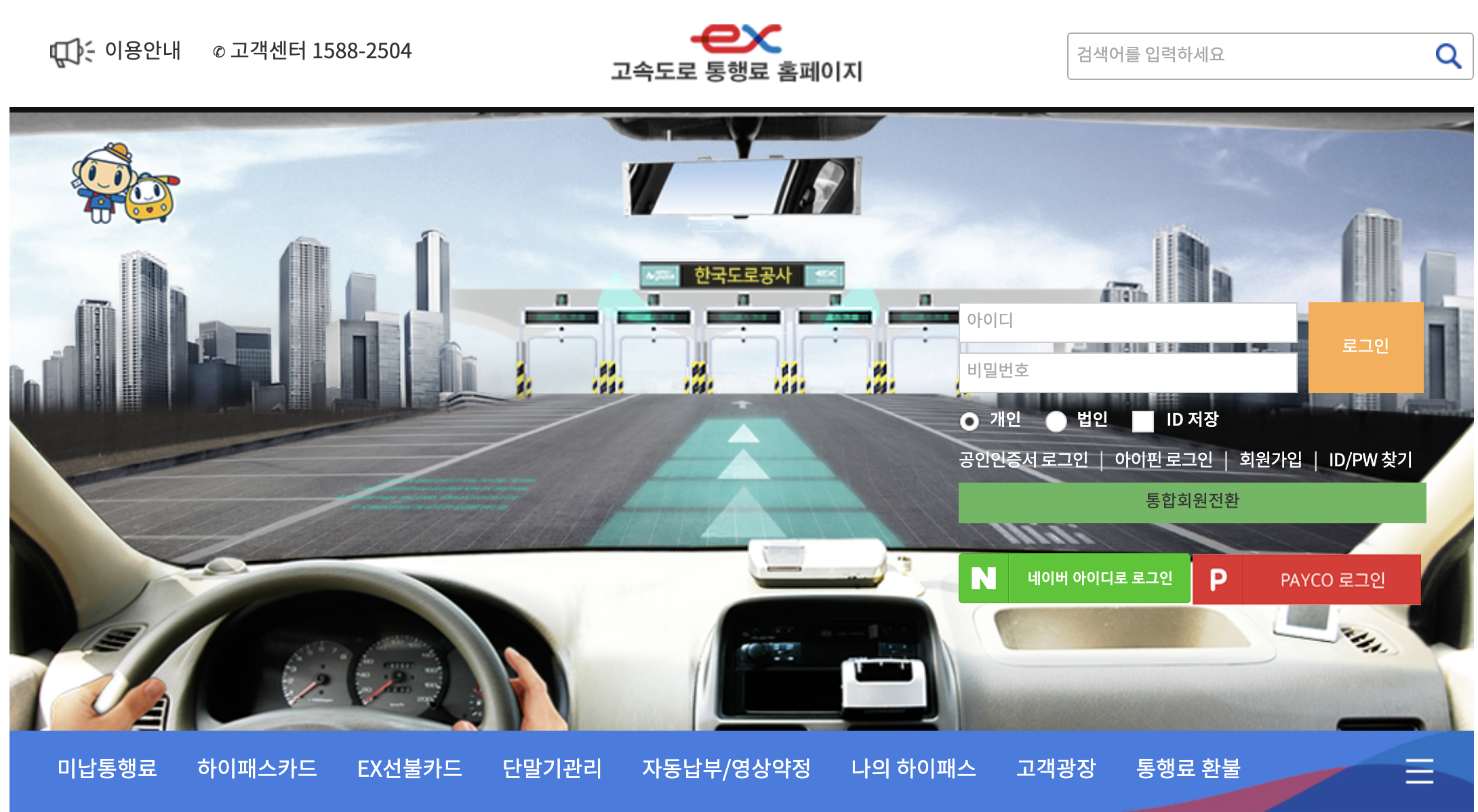 실제 개인이 하이패스 등록을 하는 페이지는 아래 주소입니다.