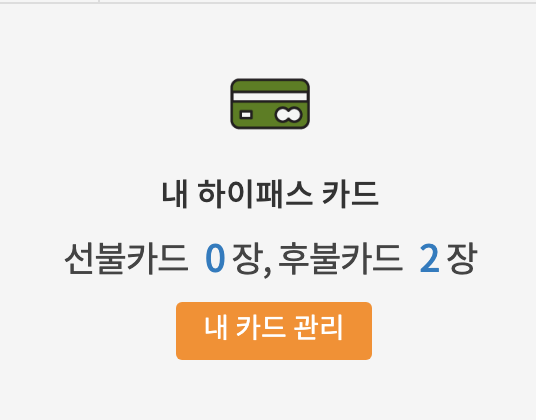 이후 등장하는, 내 하이패스 카드에서 '내 카드 관리'를 누르시고 앞서 신청한 후불하이패스 교통카드를 등록하셔야 설정이 완료 됩니다.