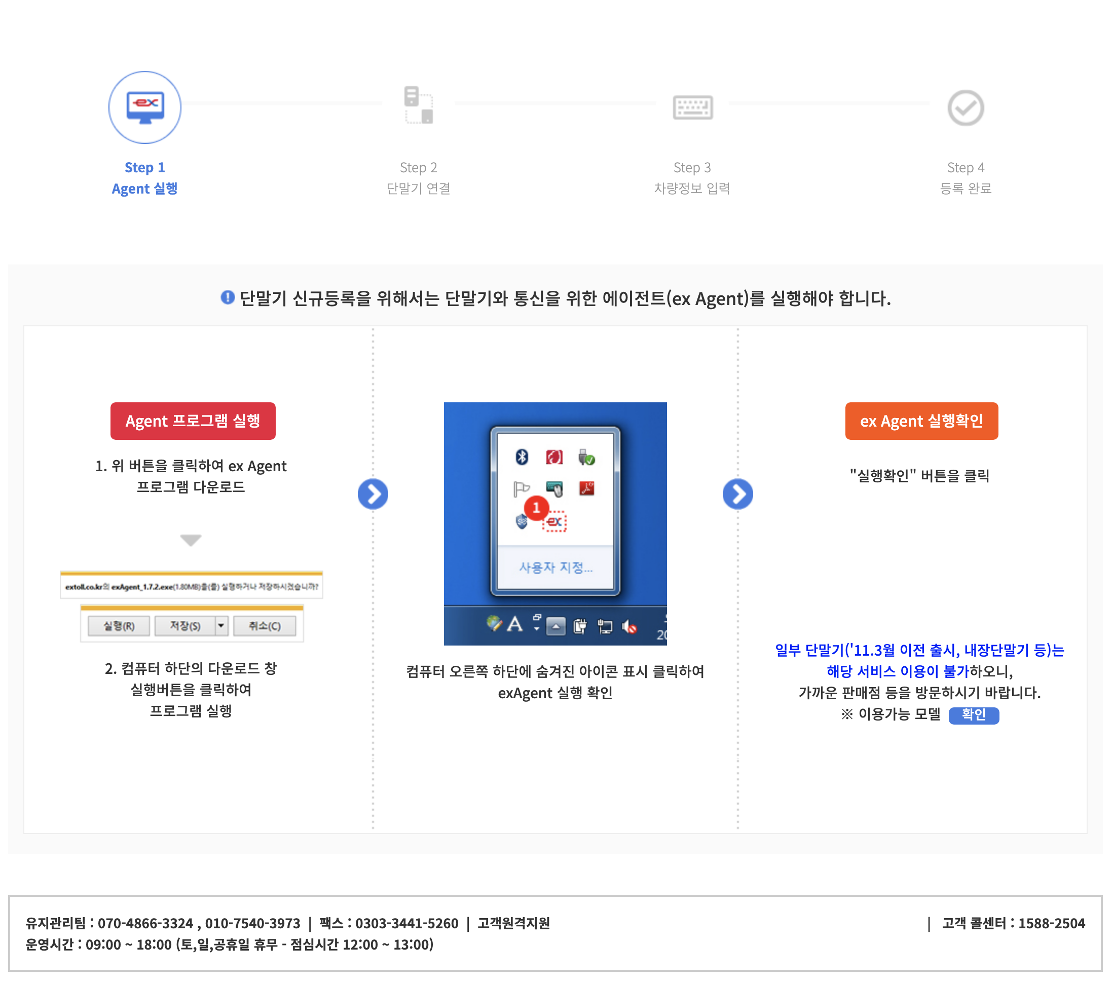 홈페이지에서 회원가입을 마치시고 '단말기관리', '등록 및 정보조회' 메뉴를 선택합니다.