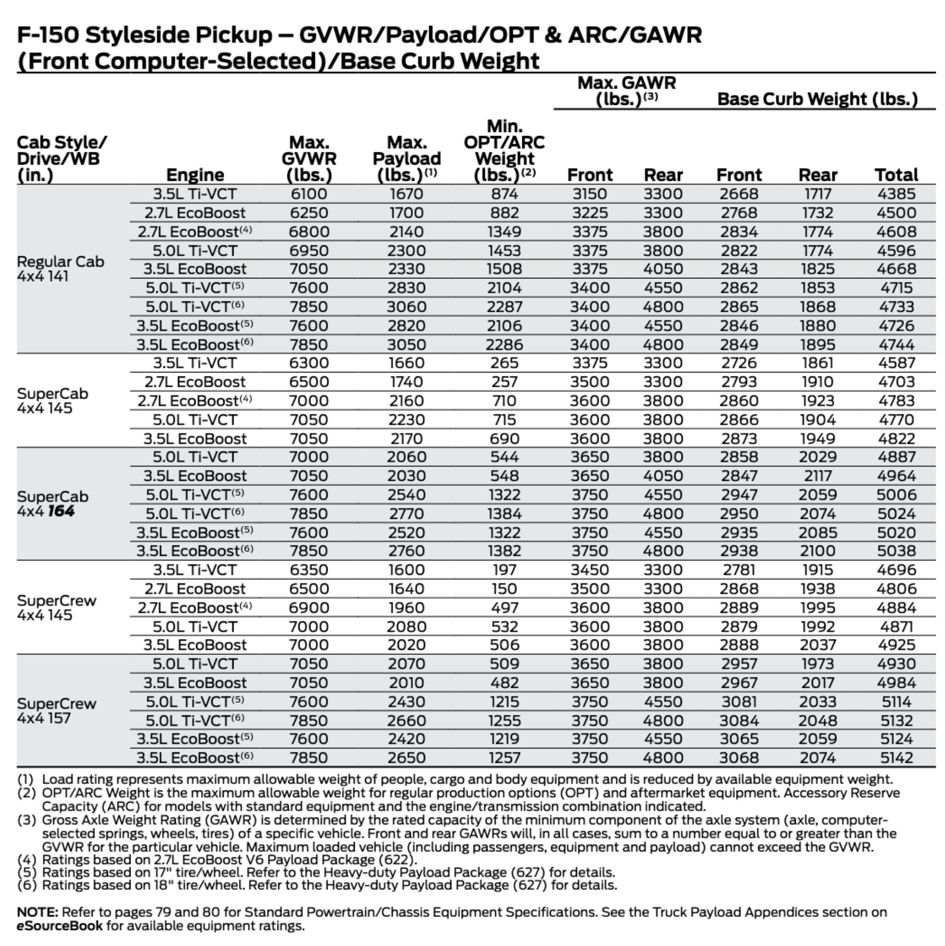 제차는 SuperCrew 4x4 145 3.5L EcoBoost입니다. GVWR은 트레일러를 달지 않은 차량 무게의 안전 허용치입니다. 제차의 최대 GVWR은 7000 lbs 3톤이 조금 넘습니다. 이를 통해 미 교통국 US DOT(Department Of Transportation)에서 나눈 기준으로 Class 2에 해당합니다. 반면, Payload 페이로드는 승차인원과 적재량을 합한 무게입니다. 최대 페이로드는 2020 lbs로 1톤(0.91톤)이 조금 되지 않습니다. 한국의 기준으로 영업용 및 자가용 차량 중에서 적재정량 1톤 이하인 차량을 4종 화물자동차로 구분합니다. 예를 들어 현대자동차의 포터 1톤, 기아자동차의 봉고프론티어 1톤, 쌍용자동차의 엑티언스포츠 등이 여기에 해당합니다. F150을 4종 화물자동차로 자동차보험을 가입하는 경우 업무용자동차보험으로 가입하게 됩니다.