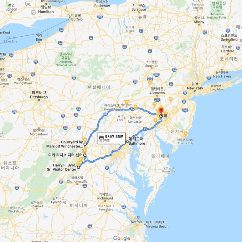 아이들 하교 후 저녁에 떠난 여정이었습니다. 공원 근처 Marriott에서 1박을 머문 뒤, 아침 일찍 입장했습니다. 쉐난도아 국립공원은 산 능선에 나 있는 Skyline Drive를 따라 조성되어 있습니다. 긴 드라이브 코스 간간이 마련된 전망대(overlook)가 상쾌한 조망을 제공합니다. 따뜻한 커피와 함께 물끄러미 발밑을 보며 평화로운 정서를 얻을 수 있습니다.