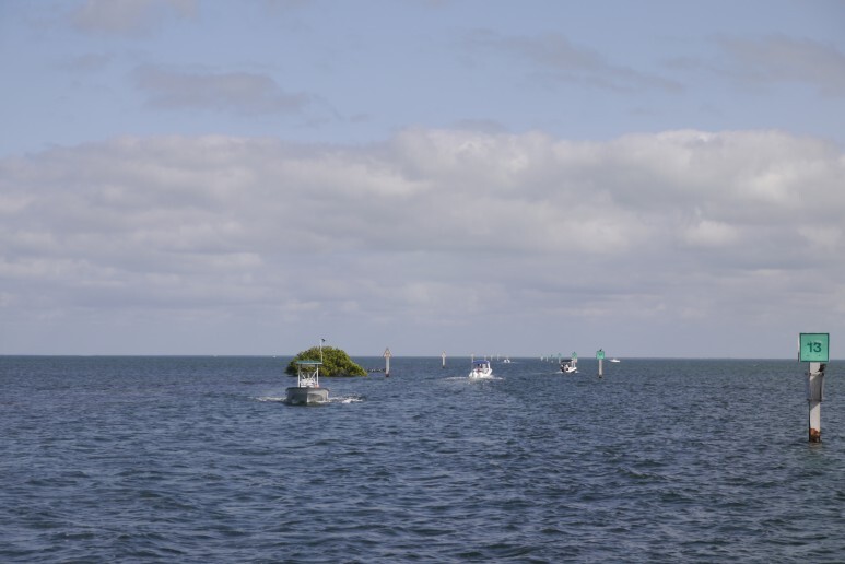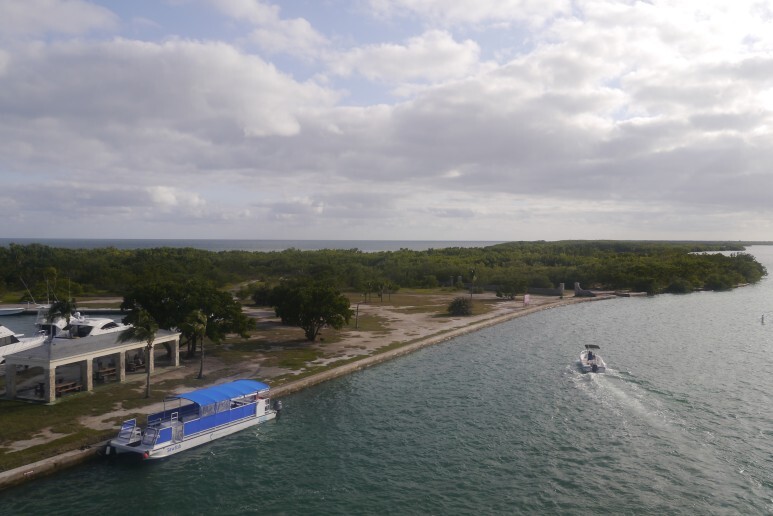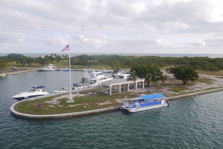 Dante Fascell Visitor Center (A)에는 작은 해양 전시장을 갖춘 선착장입니다. 이 곳에서 몇몇 섬(B, C, D)들을 방문할 수 있는데 Boca Chita Key 보카 치타 키 (B)는 3시간에 걸쳐 다녀올 수 있는 아담한 섬입니다. 이 근방은 20세기 초에 부유한 마이애미 인들의 사교장이었지만 이제는 국립공원이 되었습니다. 그 중 Mark C. Honeywell. 마크 C. 허니웰의 개인 휴양지이었던 Boca Chita Key 보카 치타 키 (B)와 이곳에 있는 등대가 가장 유명합니다. 모래 섬과 산호 섬의 중간 대역으로 해변에는 모래와 산호가 섞여 있습니다.