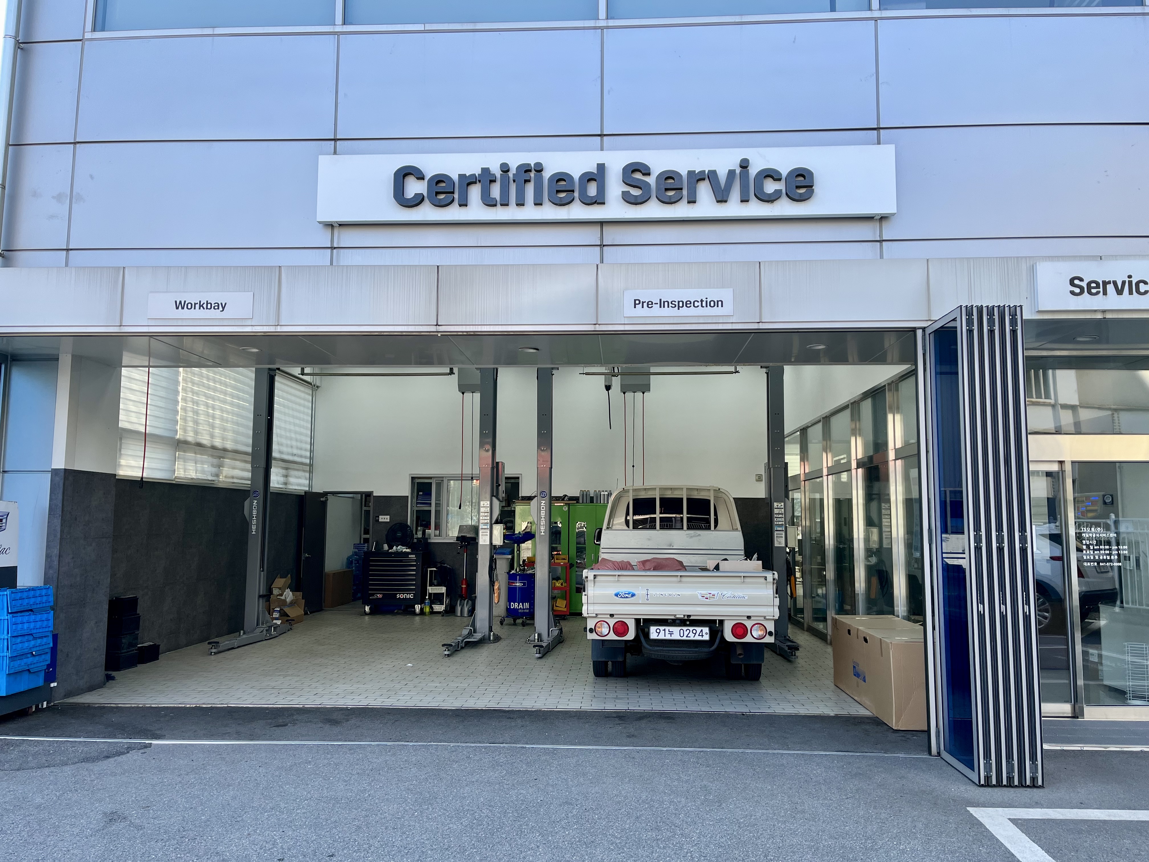 저는 포드 F150이므로, 포드 정비소 앞에 자리를 잡았습니다. 미국에서 정비받던 시절이 떠오르네요.
