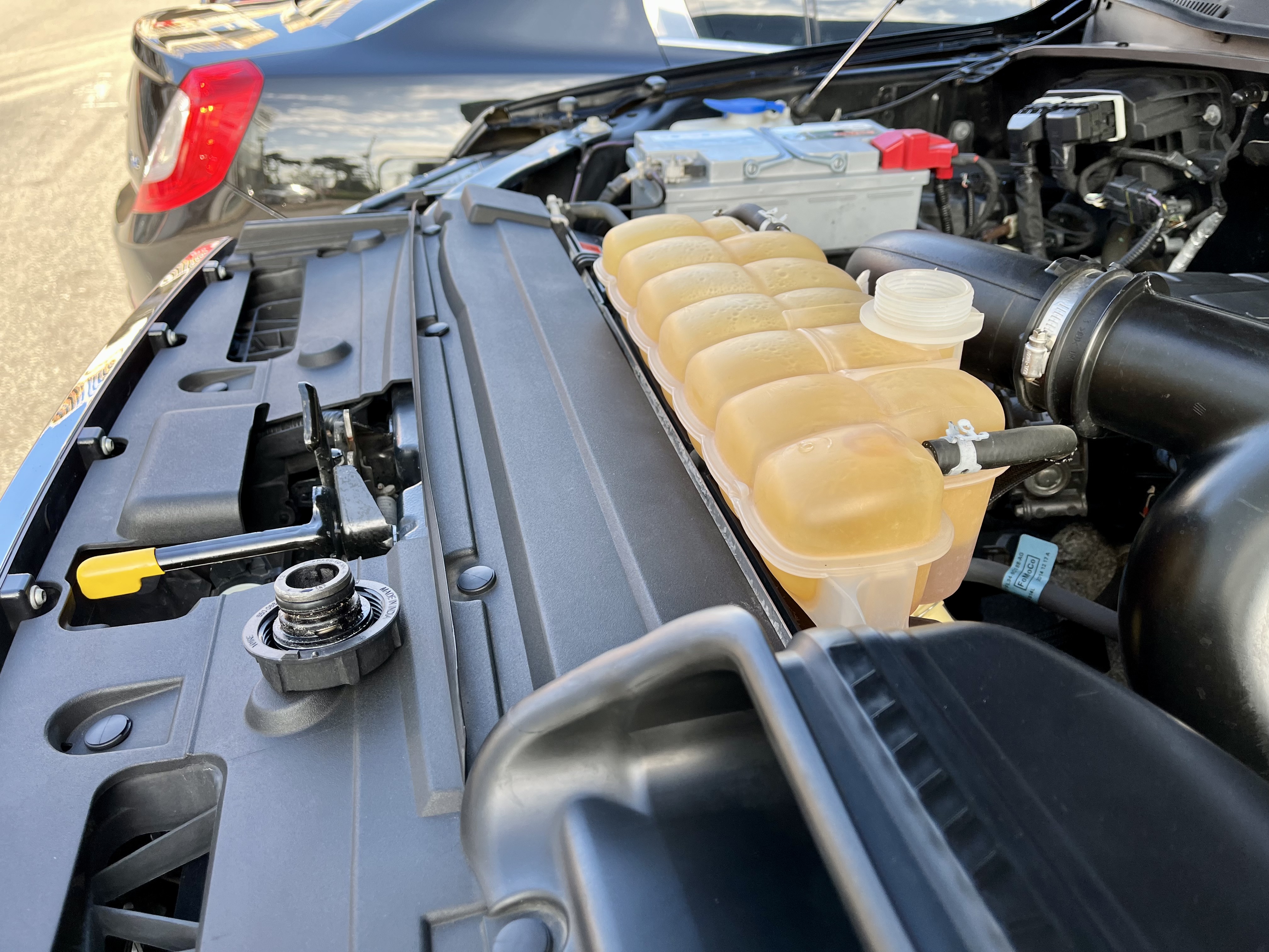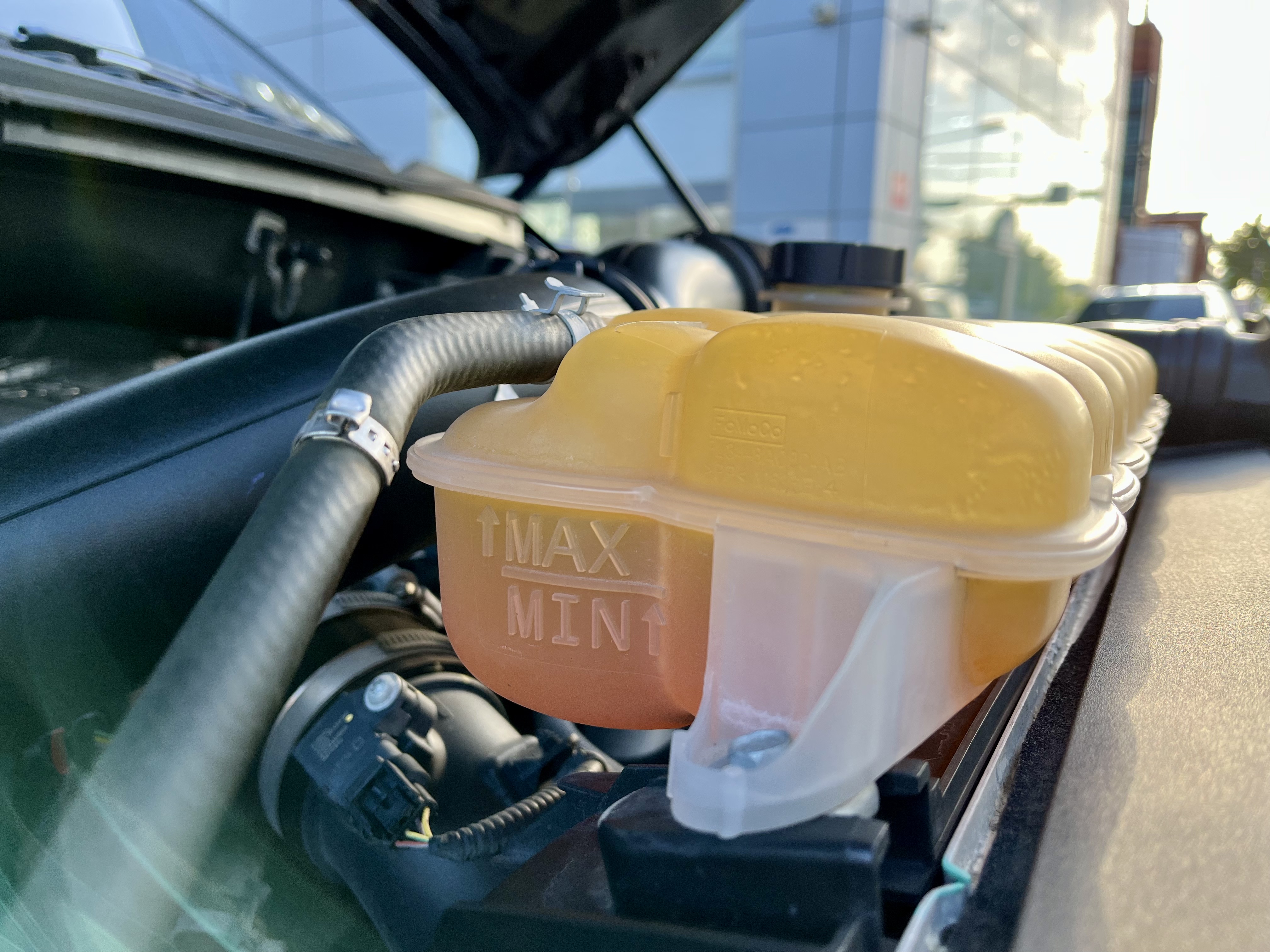 엔진룸의 부동액 레벨이 매우 낮아져 포드 서비스센터를 찾았습니다.