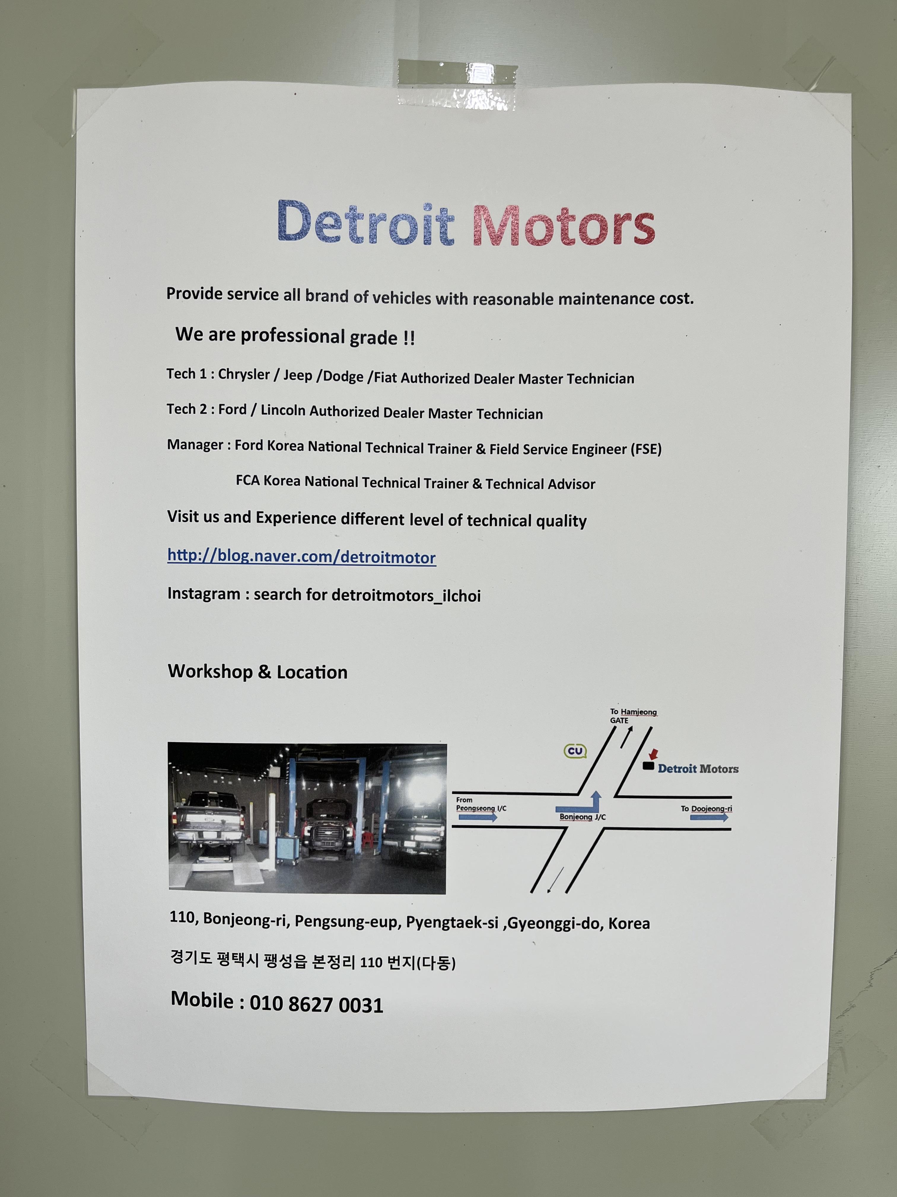 이와중에 삼화모터스 포드 미캐닉께서 평택의 디트로이트 모터스를 추천해주었습니다.
