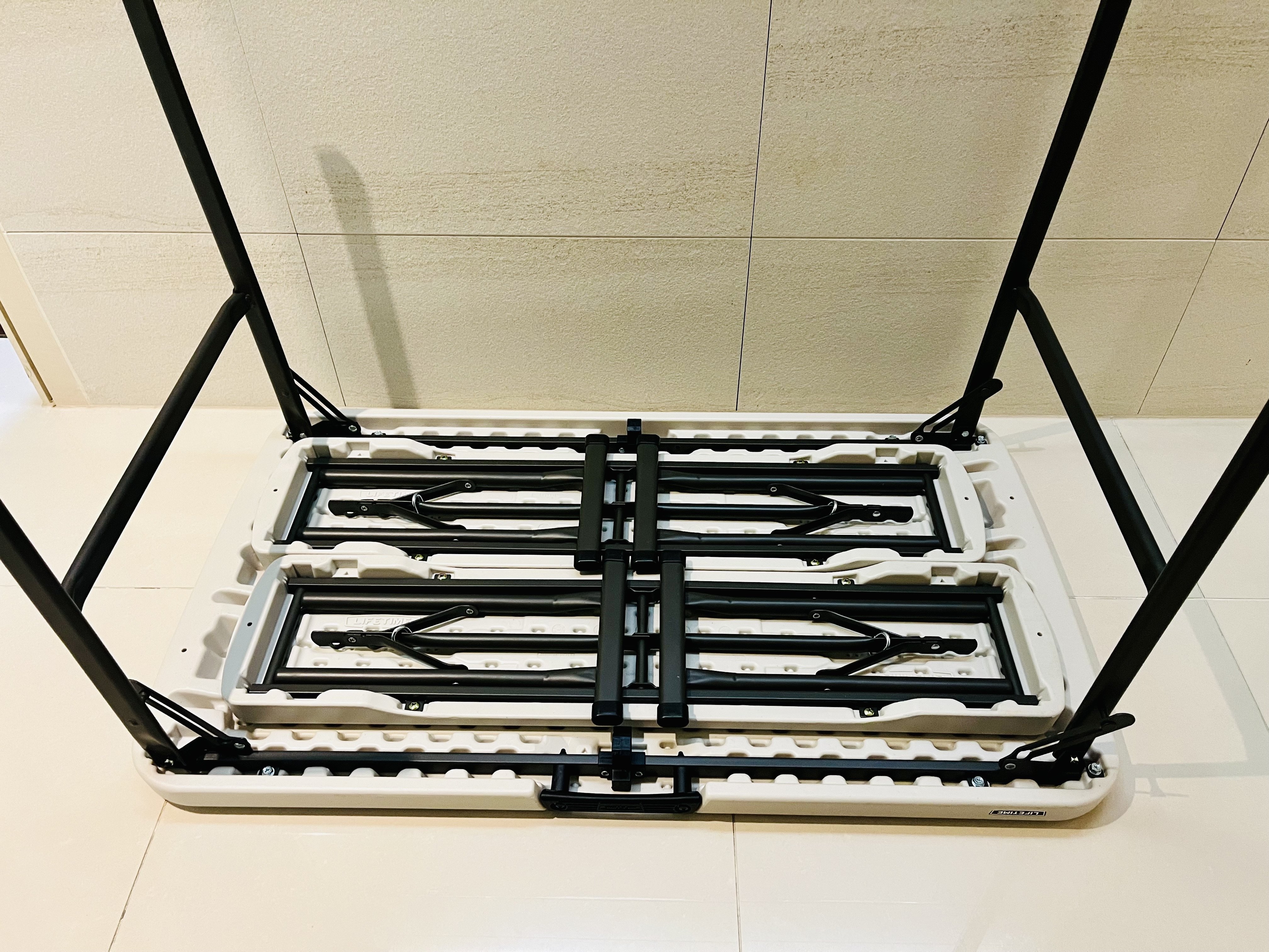 로드트립에 간단히 식사할 위치를 찾기가 쉽지 않아, 위 제품을 구입했습니다. 국내에서 시판하지 않는다고 생각했는데 생각보다 쉽게 구할 수 있었습니다. 아래와 같이 접어 수납이 가능하며, 매우 큰 편은 아니지만 4가족의 피크닉에 적합한 크기를 갖고 있습니다. 구성은 테이블1 + 의자2 세트이며, 무게가 19.9kg로 비교적 무거운 편입니다.