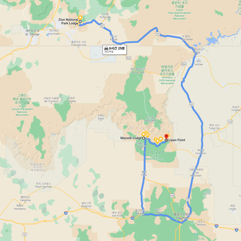 매우 길었던 운전 중 하나입니다. 지온 국립공원에서 트레일을 마친 뒤 나머지 시간을 모두 운전에 바쳤습니다. 결국 도착한 그랜드 캐년의 사우스 림 South Rim. 이곳에서 이틀간 한가하게 그랜 캐년의 모든 뷰포인트를 즐겼습니다. 지친 가족의 기운과 체력을 다시 끌어 올리는 것이 쉽지 않습니다. 뜨거운 낮에는 랏지에서 휴식을 취했습니다.