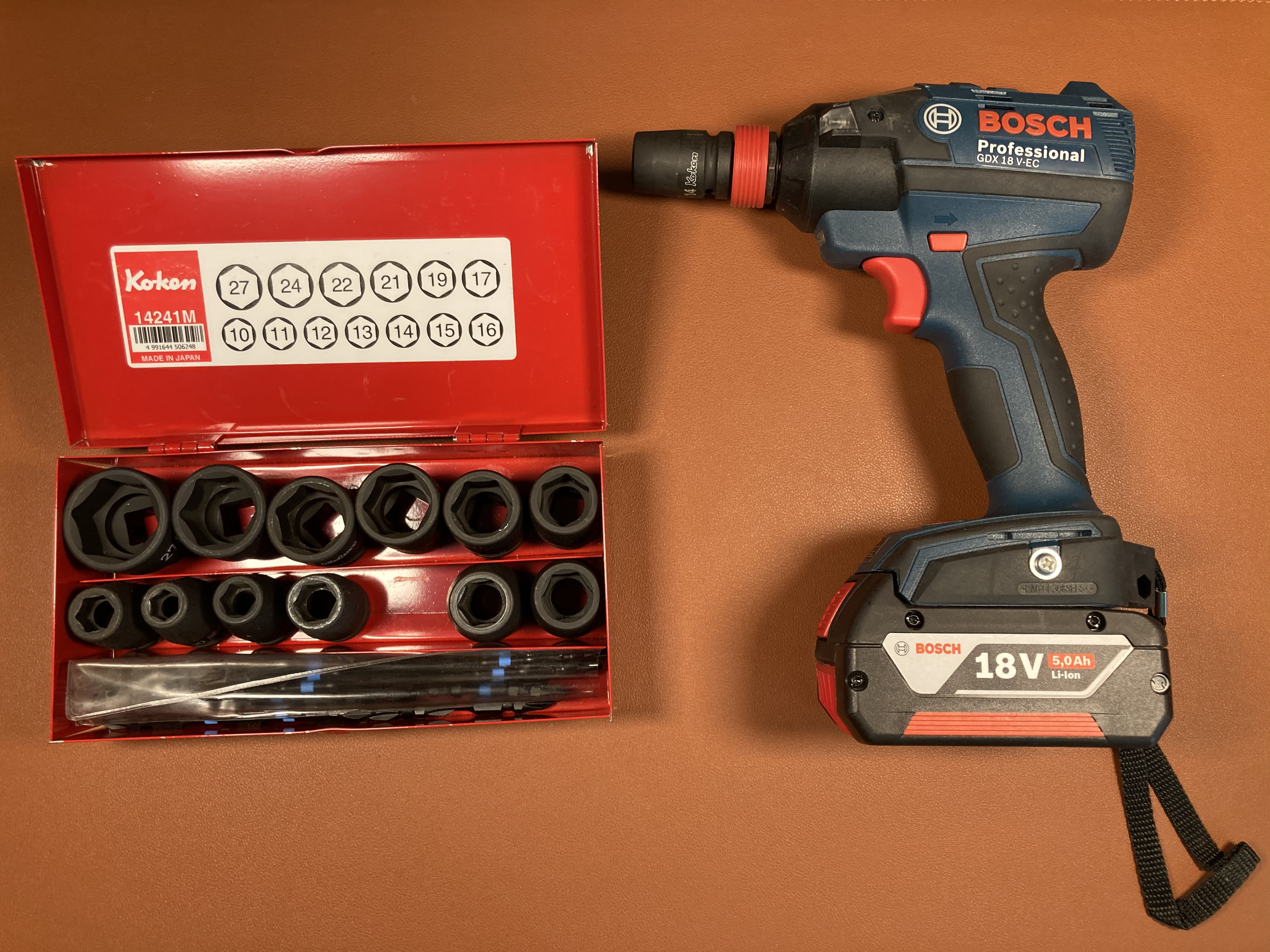 집에 있는 임팩트 랜치는 보쉬의 GDX 18V-EC인데, 1/2 square 부분으로 185 Nm의 토크가 나오게 됩니다. F150의 휠을 조이는데는 부족함이 있네요. 일단 임팩트용 소켓을 구해 두었습니다.