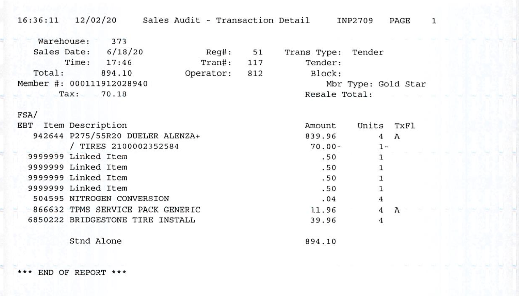 이 타이어의 일련번호를 확인하신 후, 타이어매장 매니저 격의 직원 분께서 저를 환불 코너에 데려가 주셨습니다.