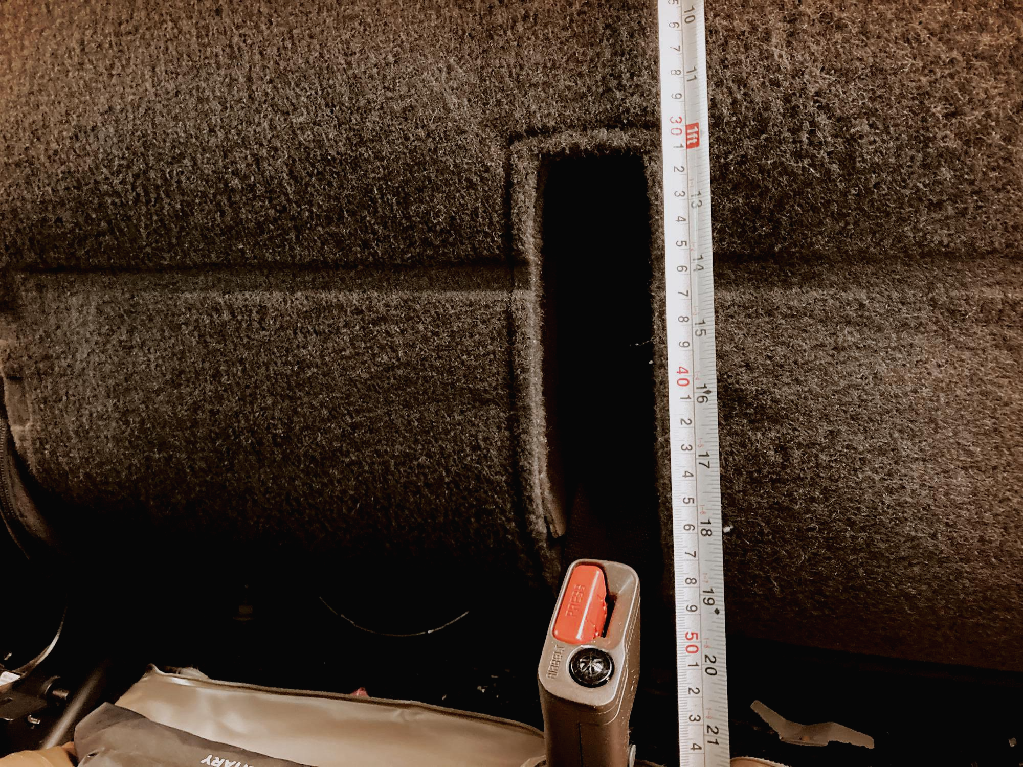 F150은 뒷좌석 하방이 두꺼운 부직포(?) 재질로 되어 있어 벨크로를 붙일 수 있습니다. 가끔 해방 부위 길이를 재고 싶을 때가 있는데 수치를 얻게되어 기록을 남겨봅니다.